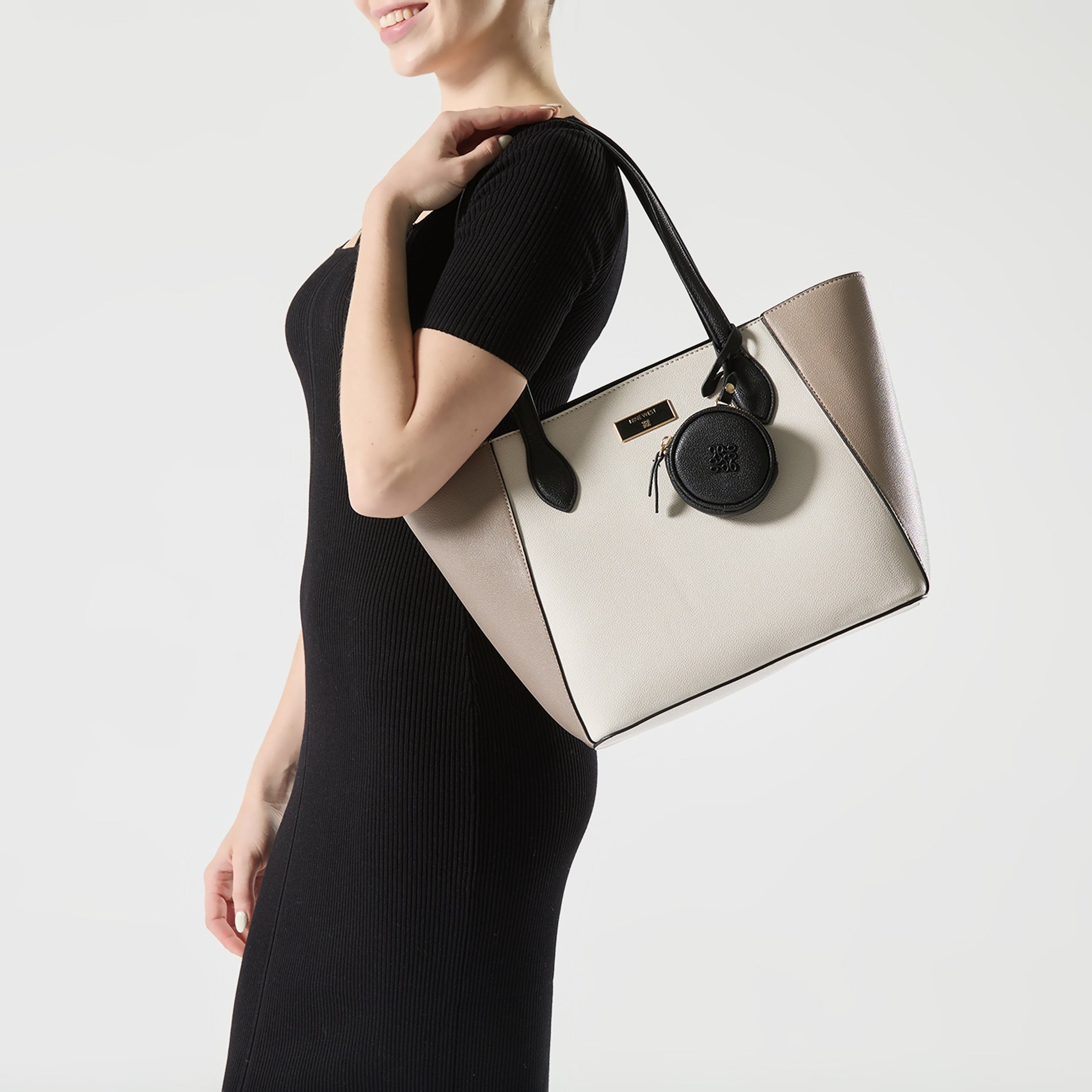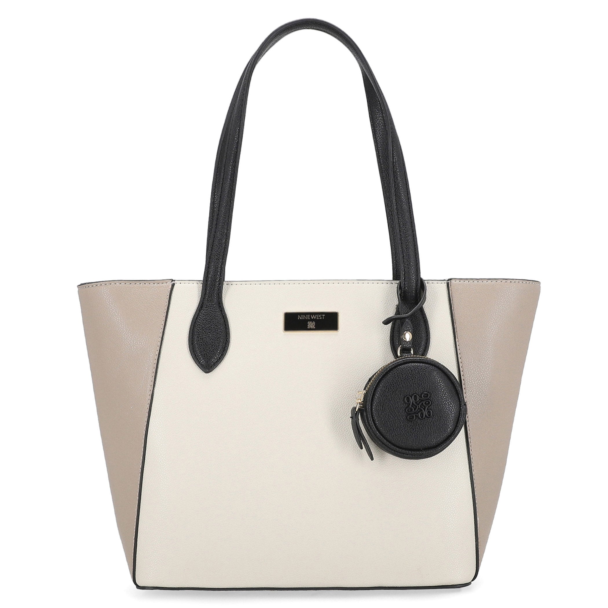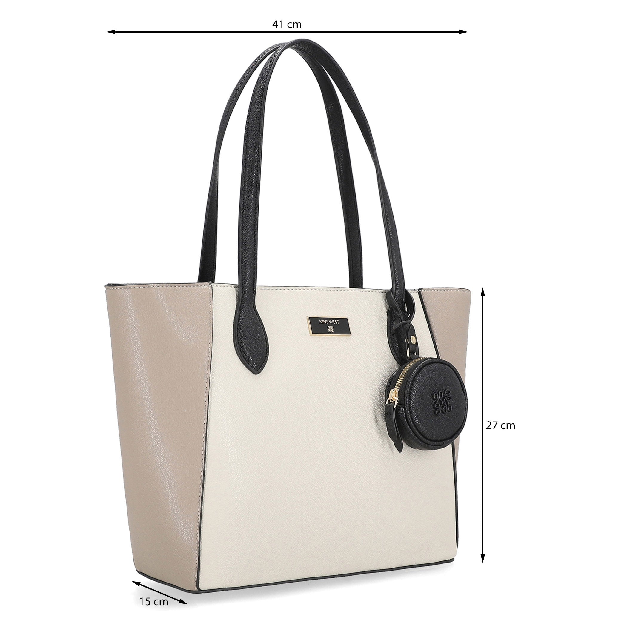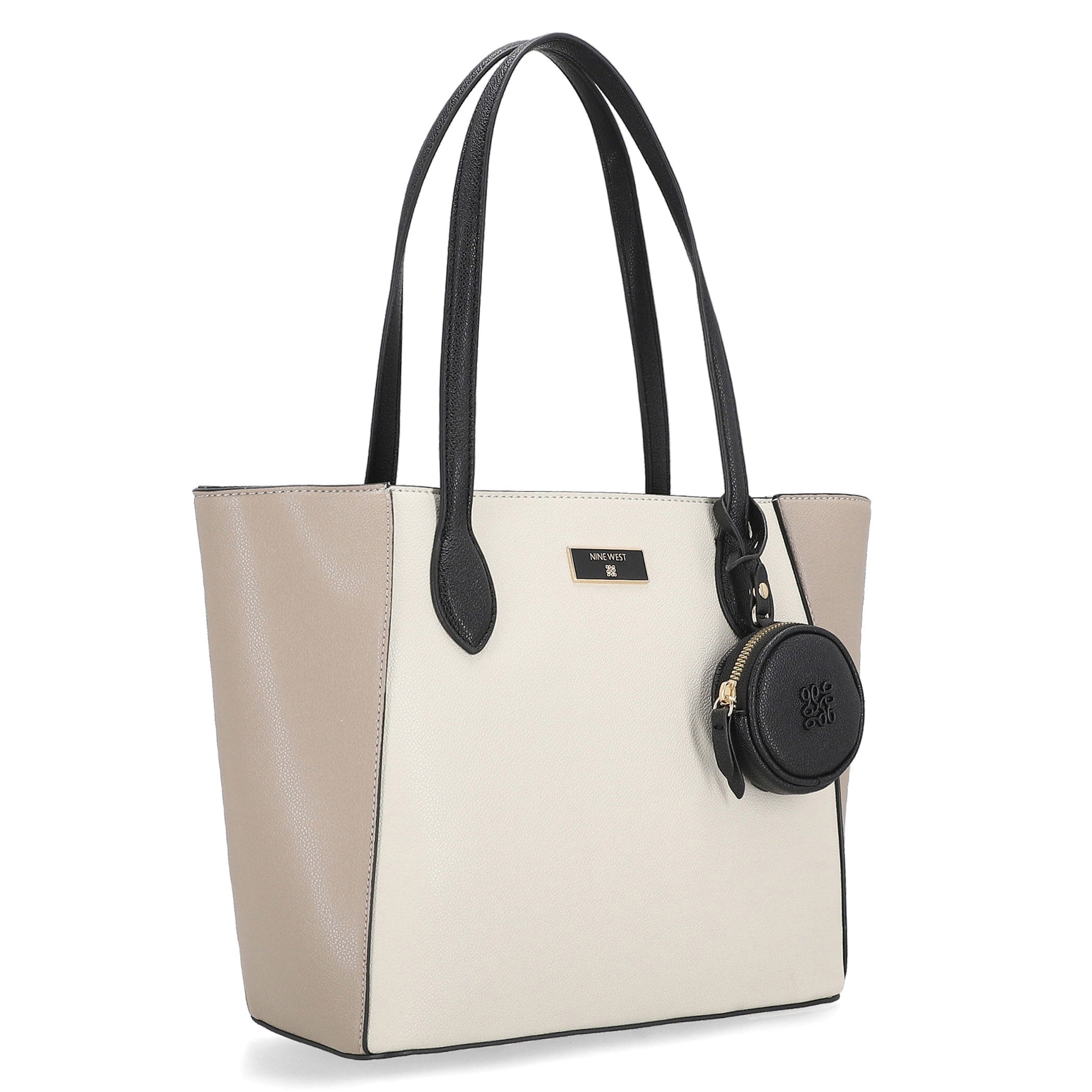 Bolsa tote Nine West para mujer elaborada en material sintético con aplicación lisa, estampado liso, fijación de cierre y textura lisa.