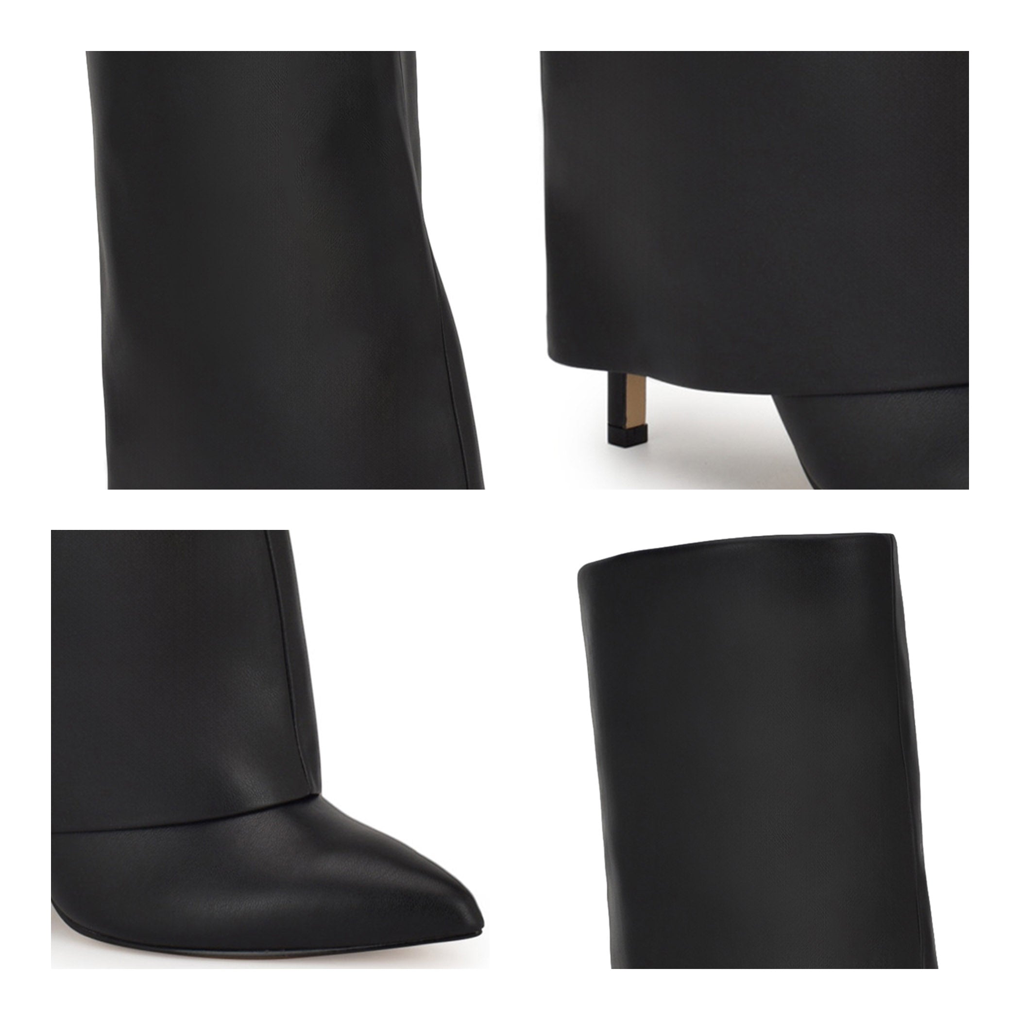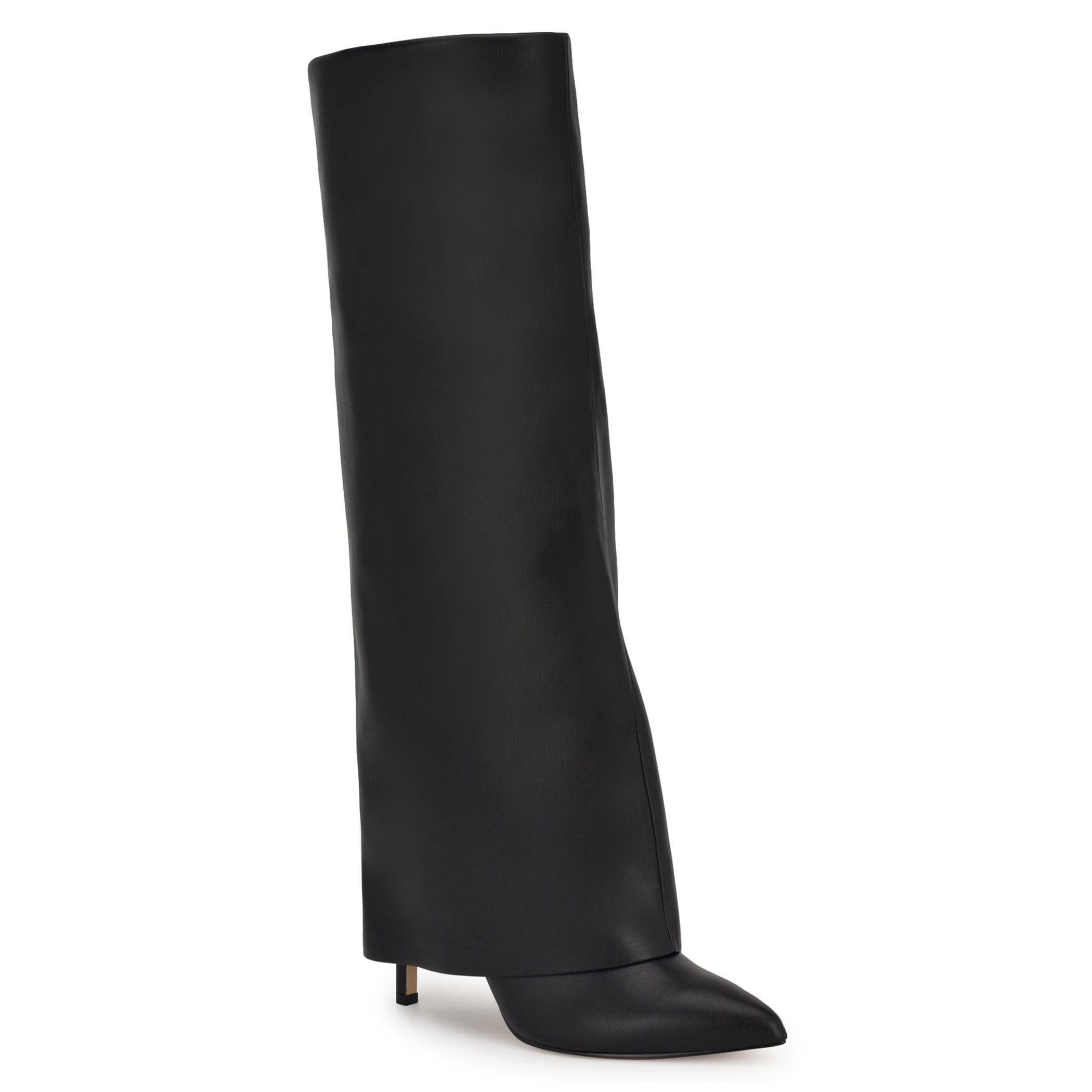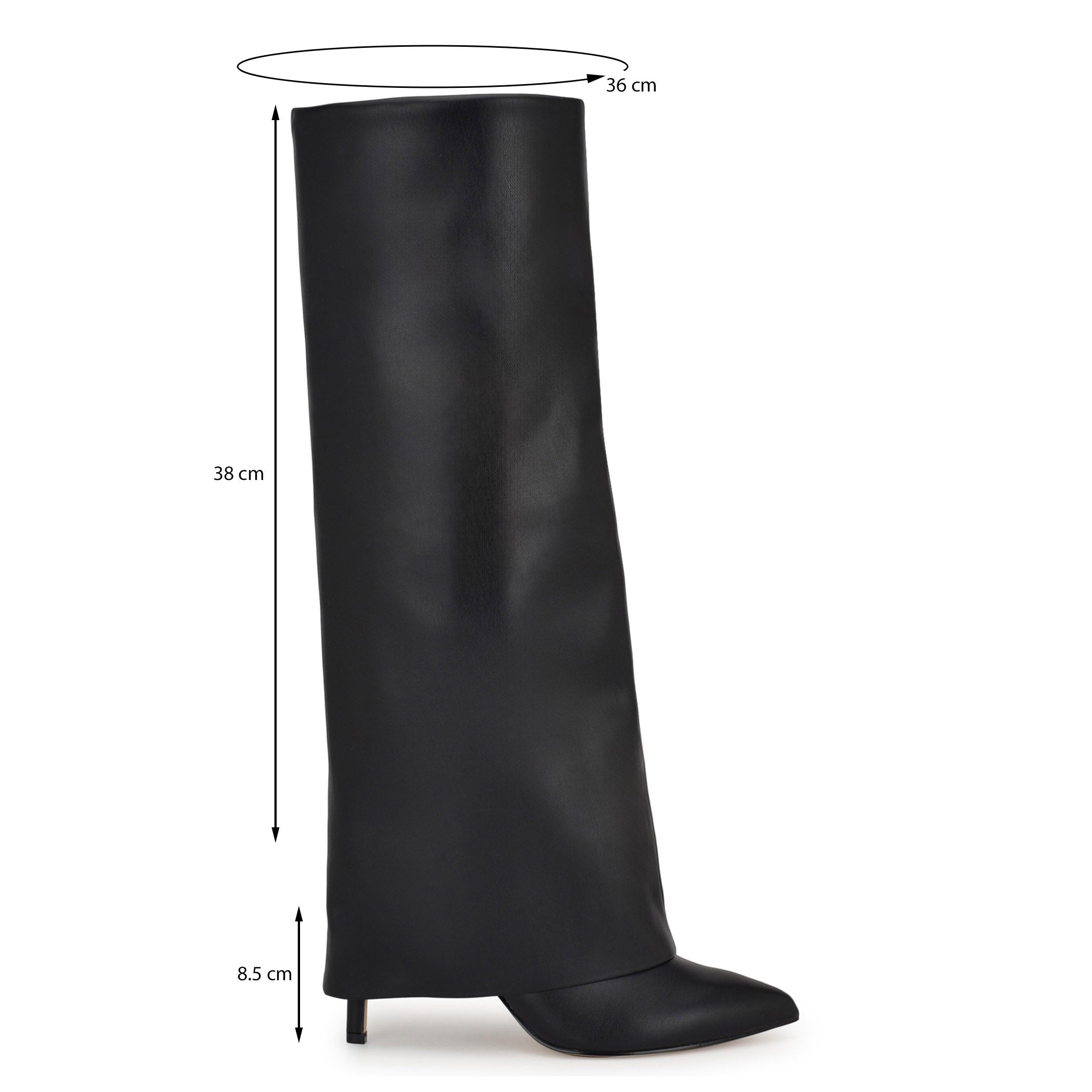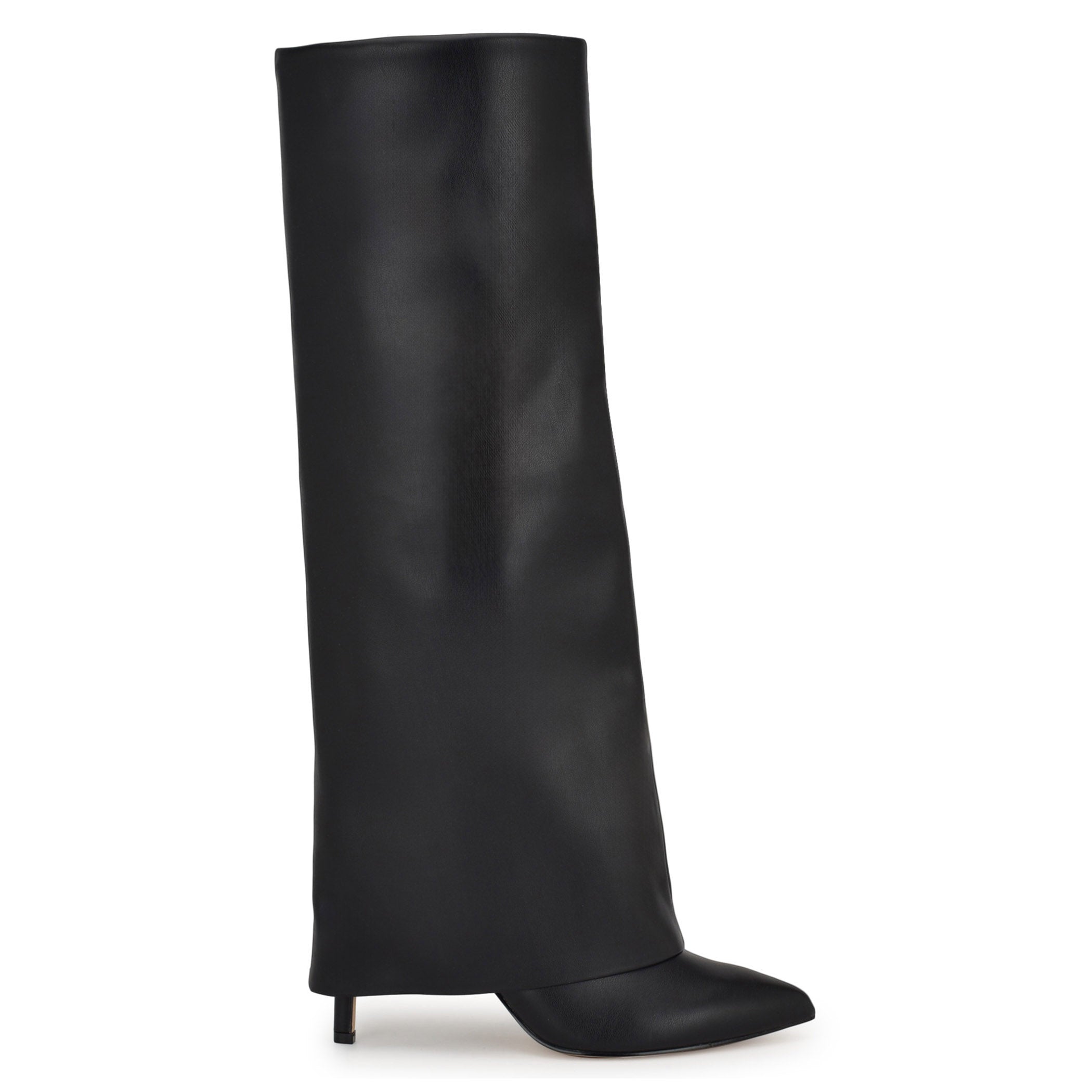 Bota Nine West para mujer elaborado en material sintético con estampado liso, cuña alta, fijación de cierre, punta puntal y textura lisa.