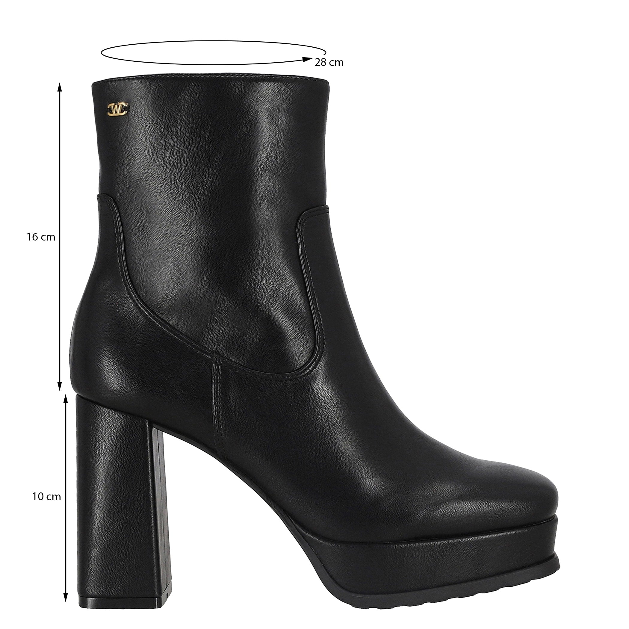 Estos botines Westies son perfectos para un look moderno y estilizado. Confeccionados en material sintético con estampado liso y textura lisa, presentan un diseño elegante con punta cuadrada que aporta un toque contemporáneo. La fijación de cierre garantiza un calce cómodo y seguro, mientras que la cuña alta y el tacón de 10 cm ofrecen una silueta estilizada ideal para realzar cualquier outfit.
