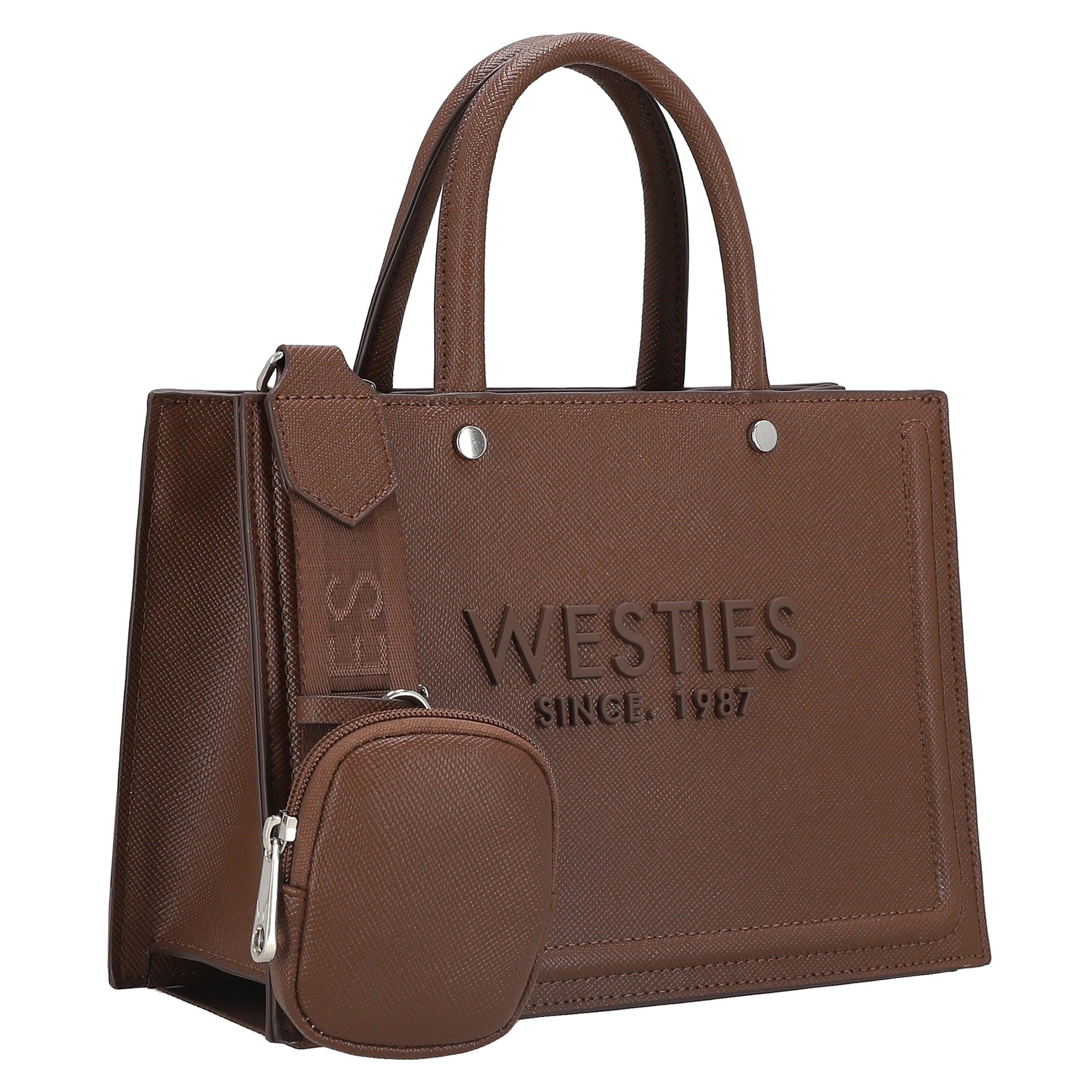 Bolsa de mano Westies para mujer elaborada en material sintético con aplicación lisa, estampado liso, fijación de cierre y textura lisa.