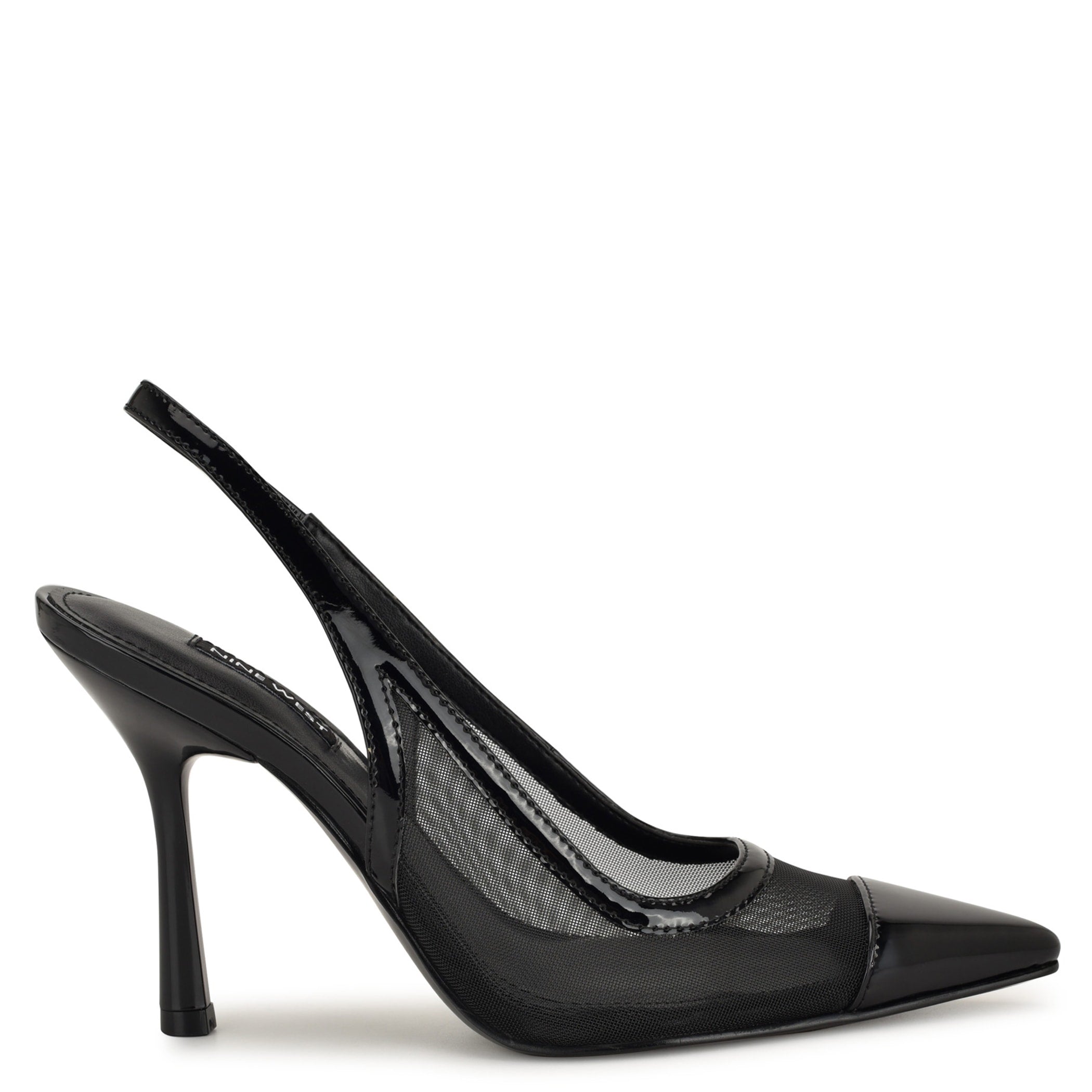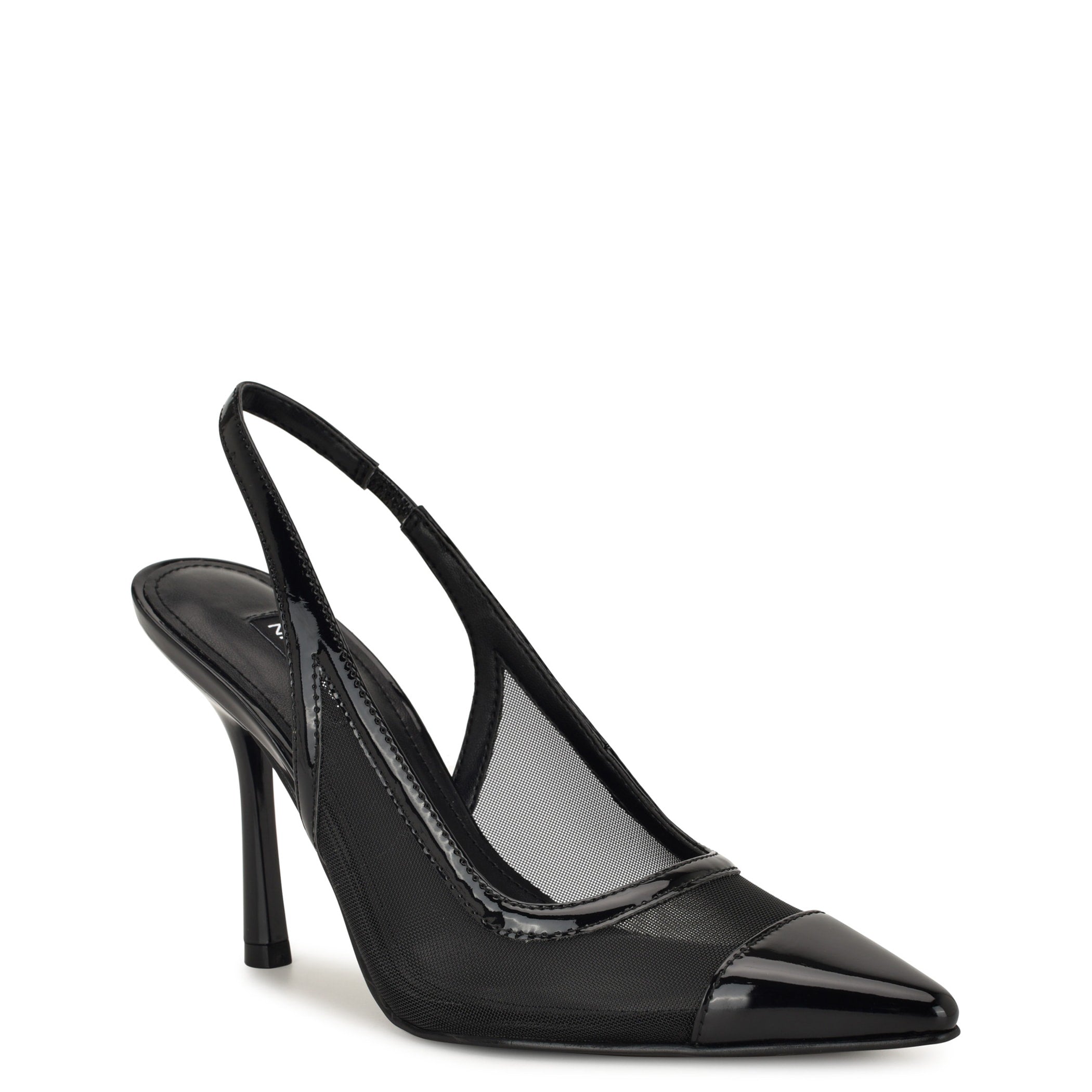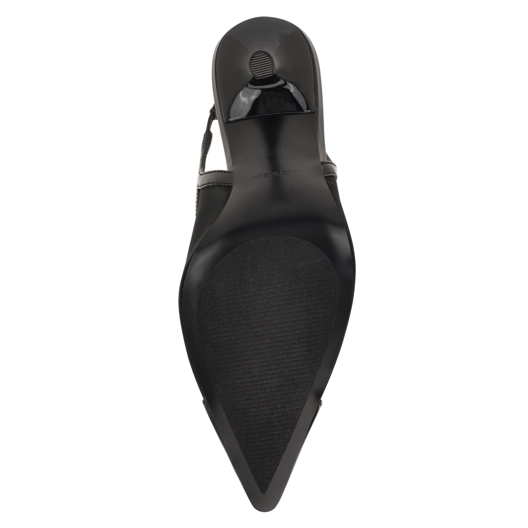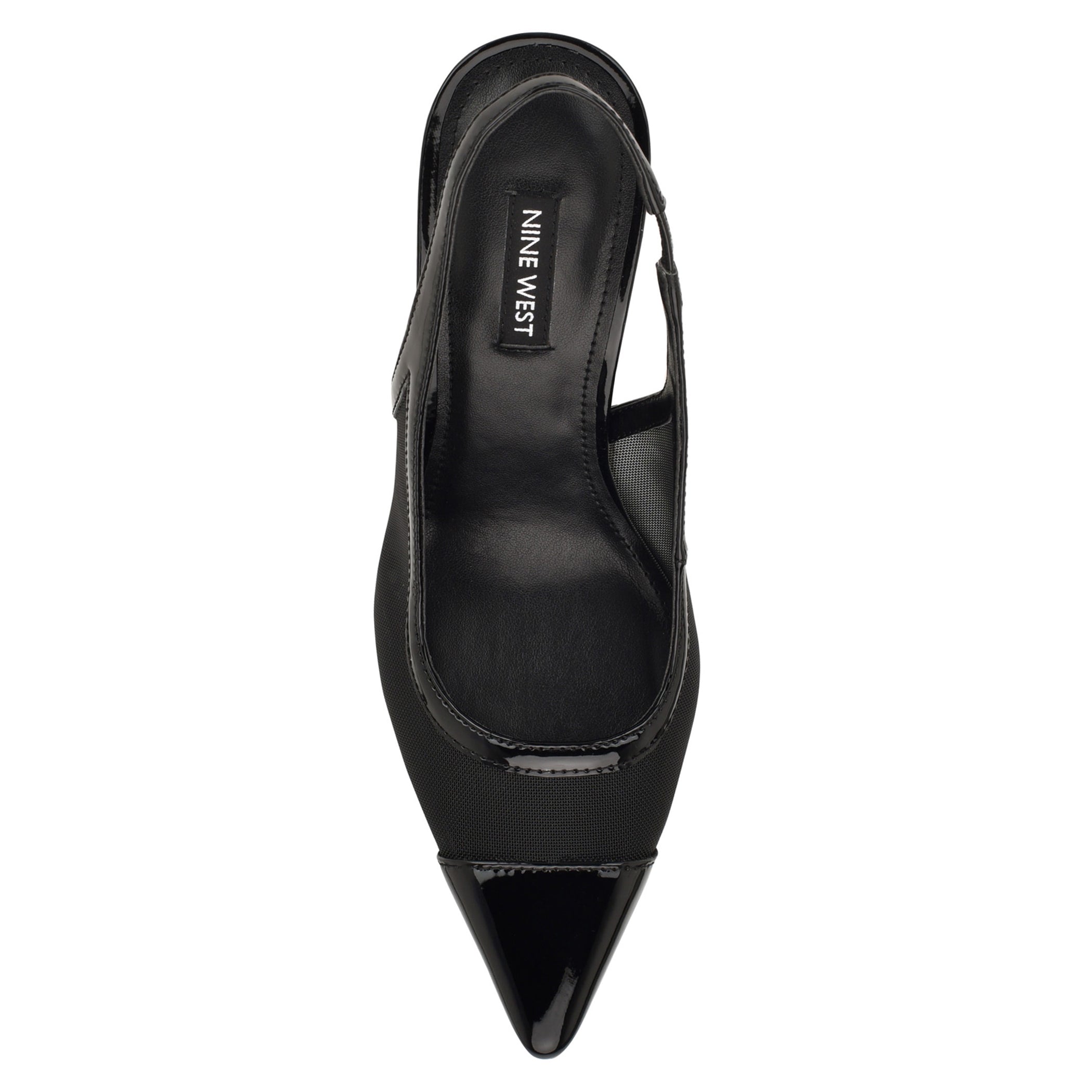 Zapatilla Nine West para mujer elaborada en material textil con estampado liso, fijación de hebilla, punta puntal y textura lisa.