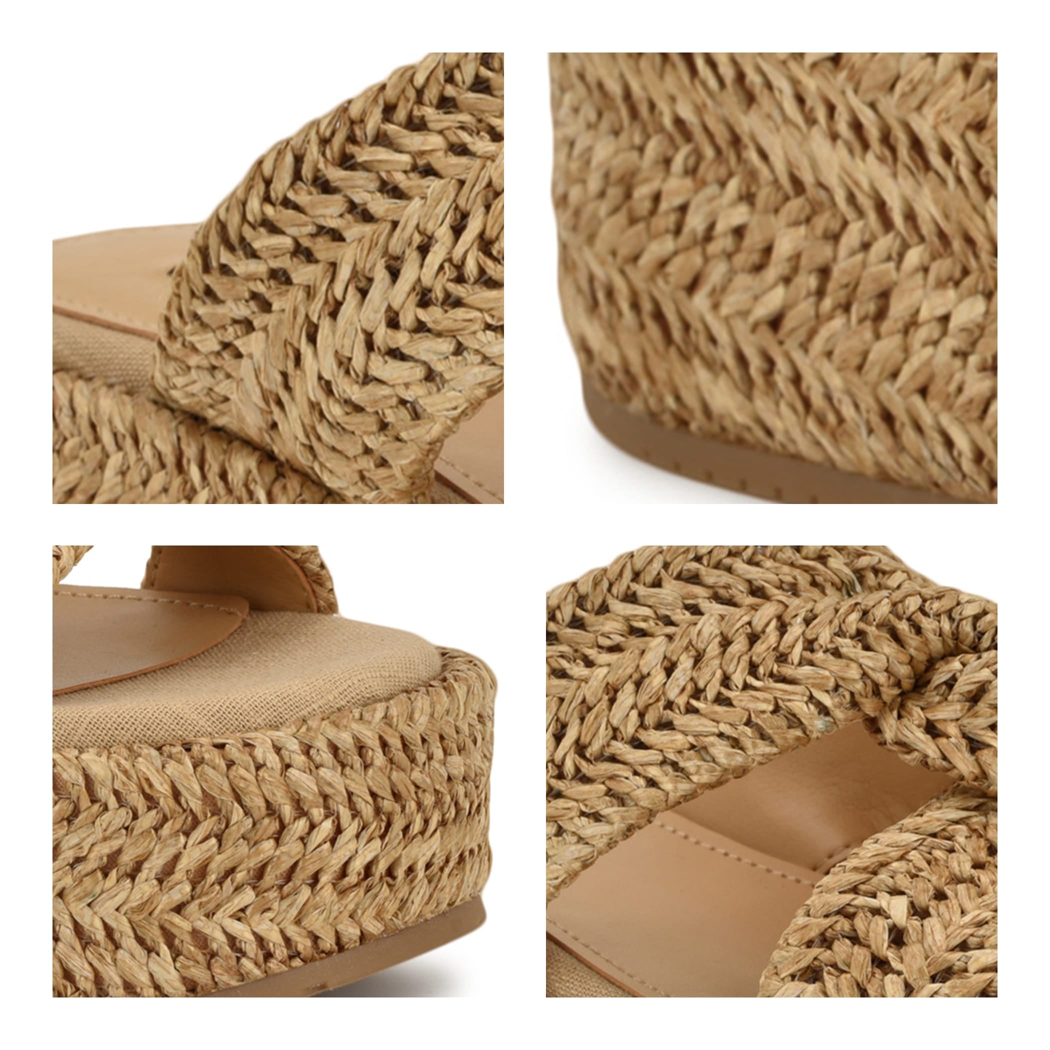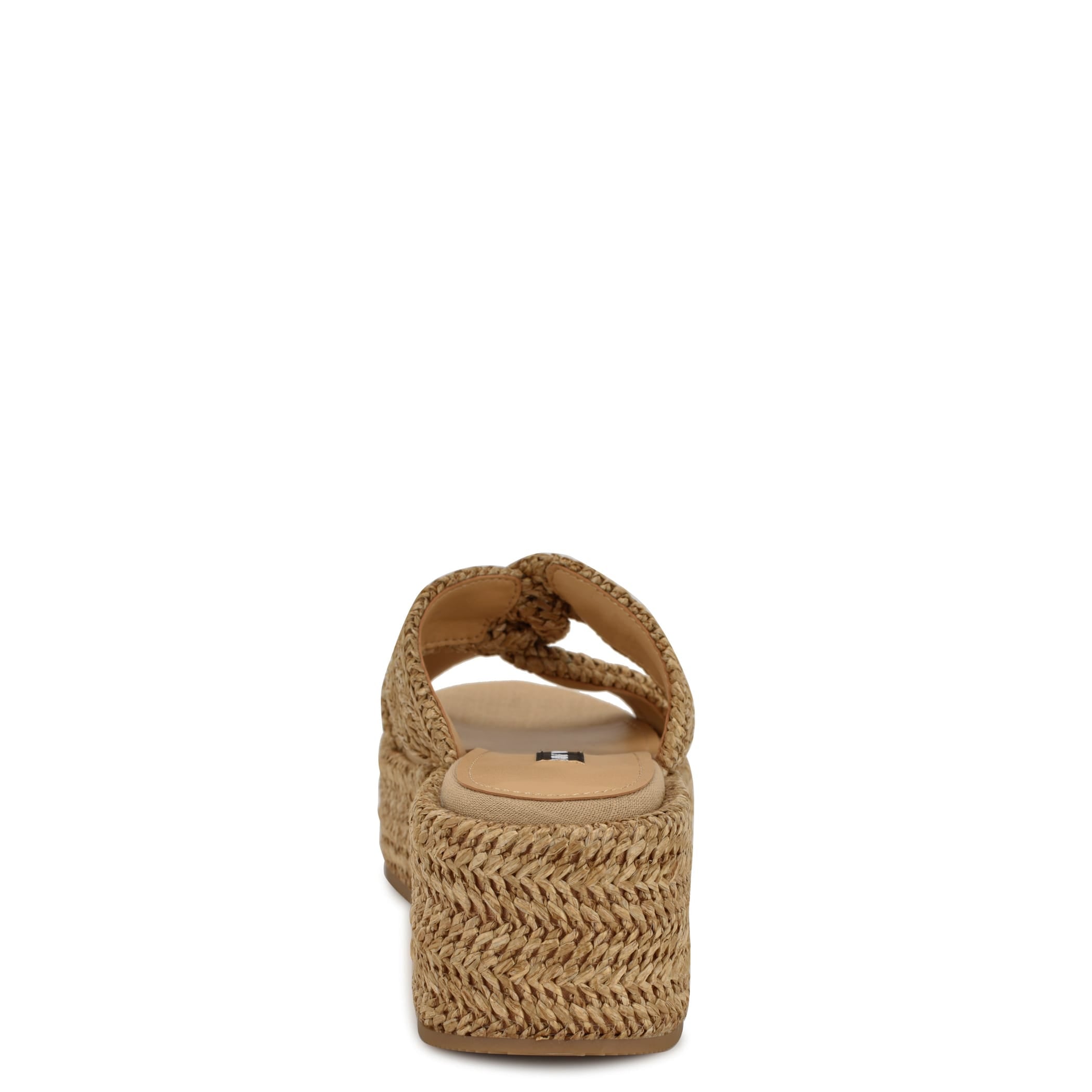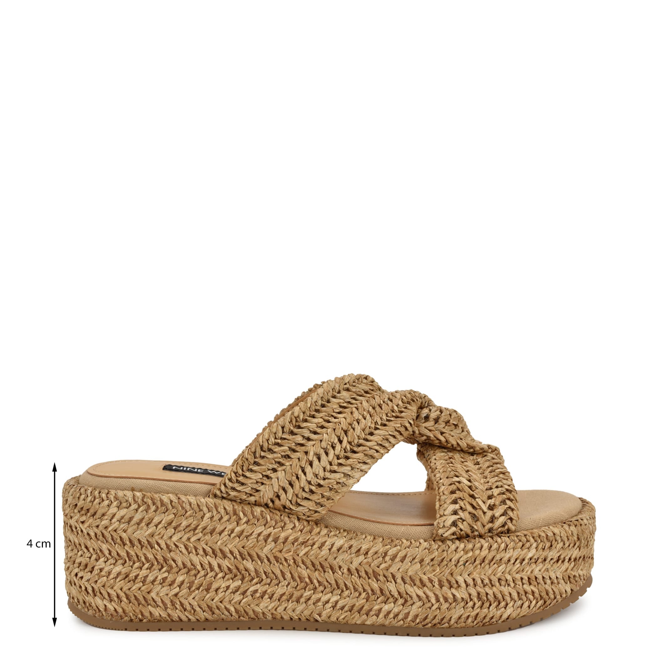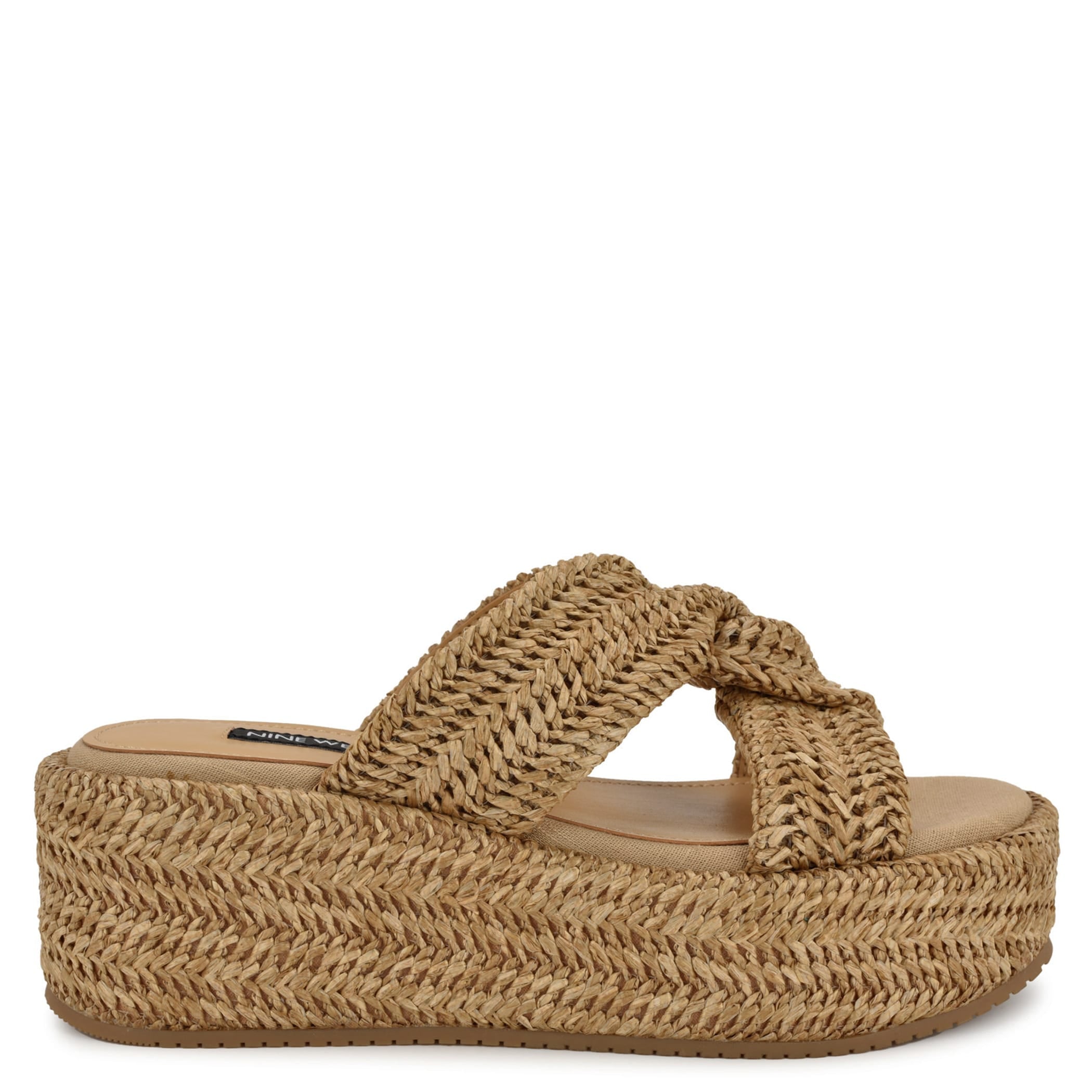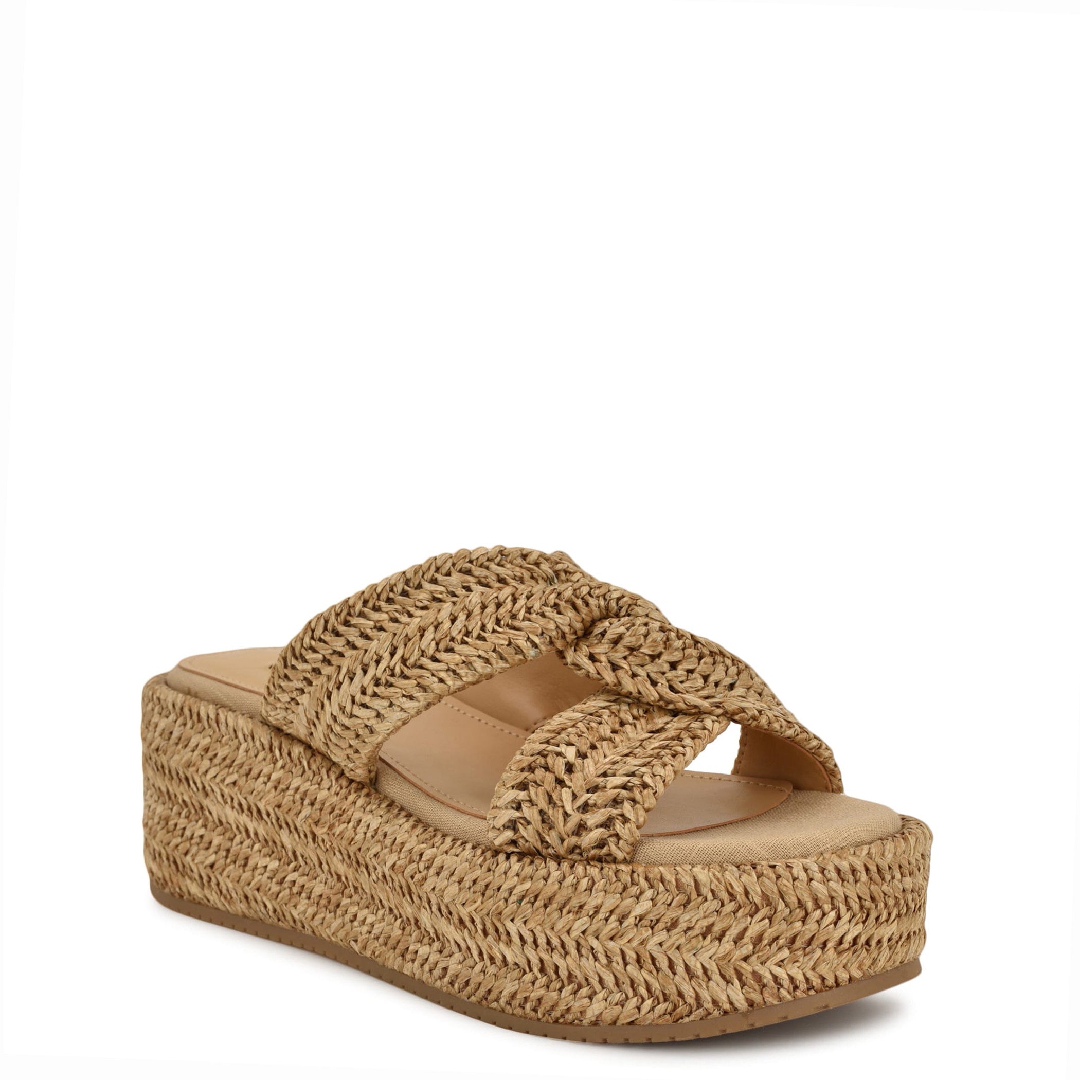 Sandalia con plataforma Nine West para mujer elaborada en material rafia con estampado liso, fijación abierta, punta redonda y textura lisa.