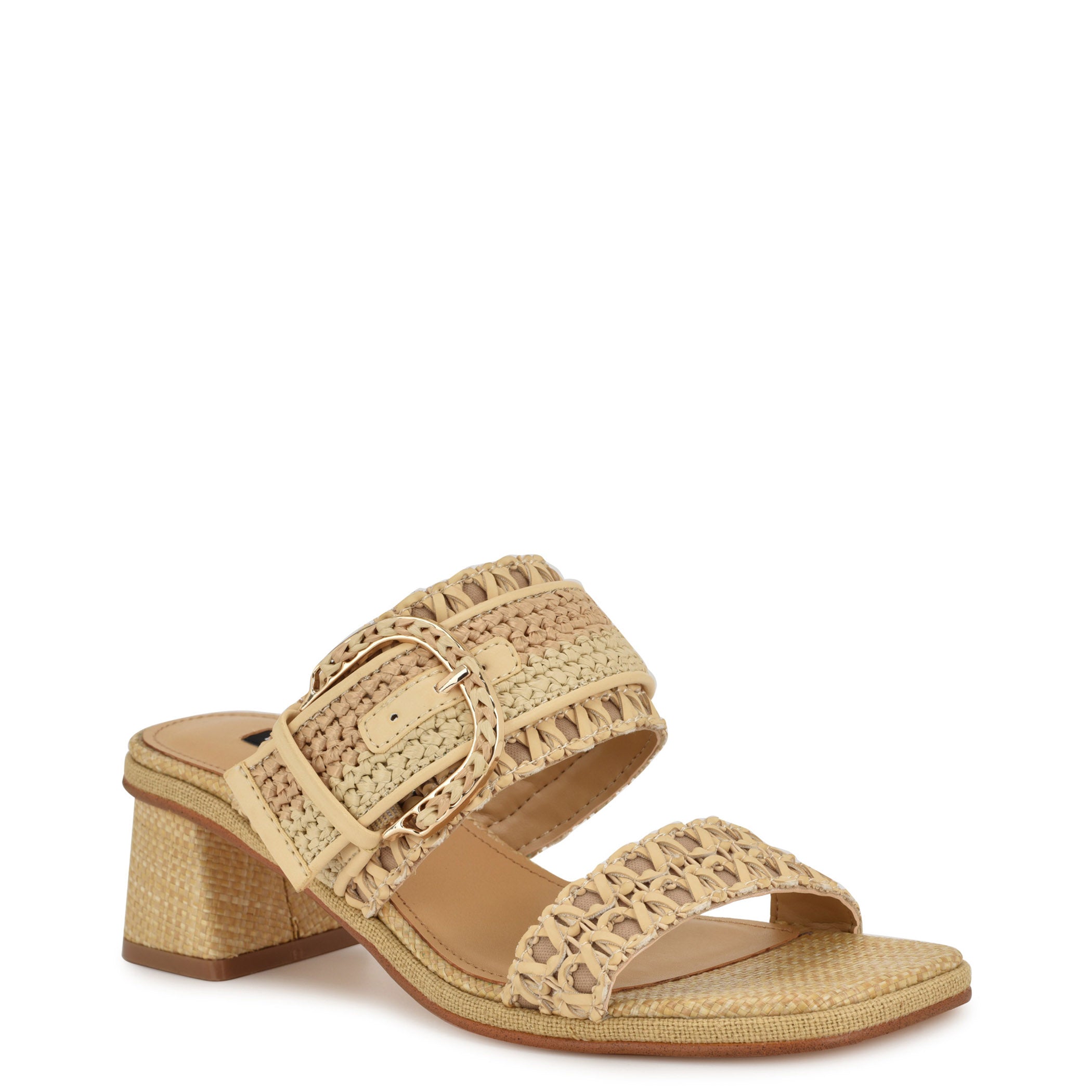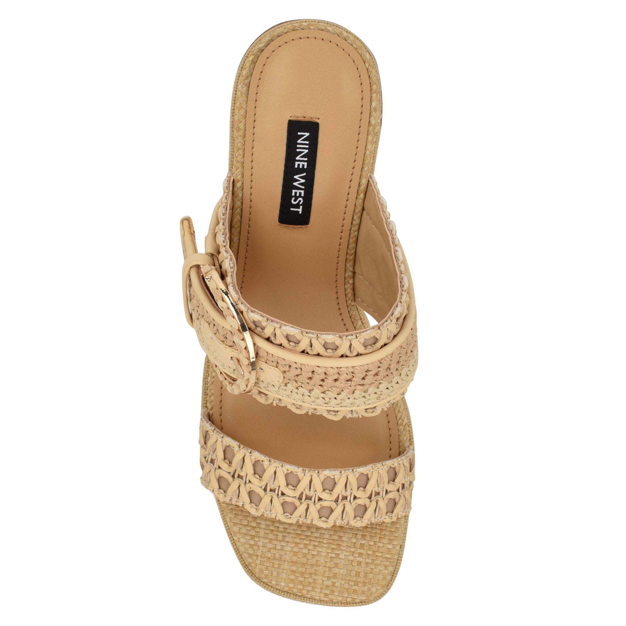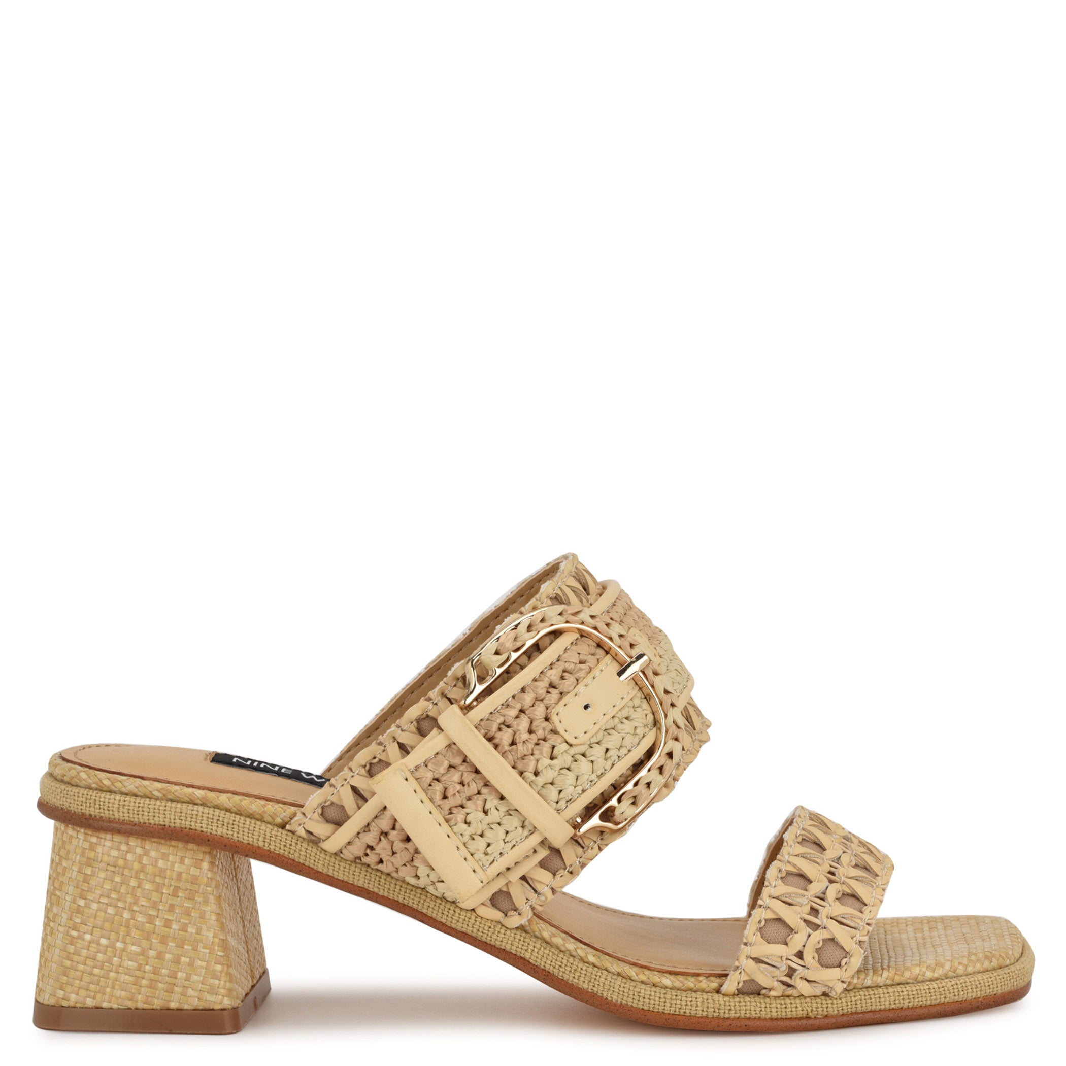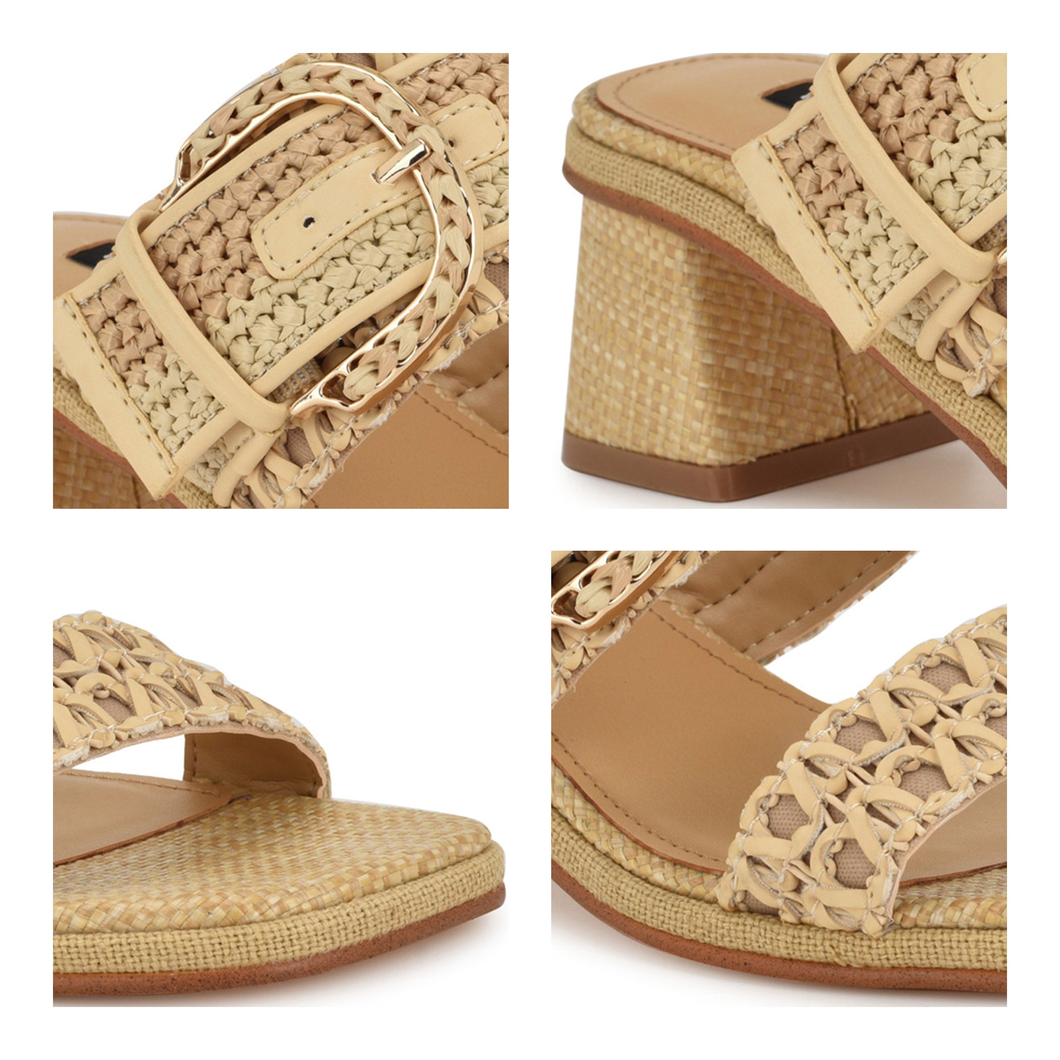 Zapato destalonado con tacón Nine West para mujer elaborado en material rafia con estampado liso, fijación abierta, punta cuadrada y textura lisa.