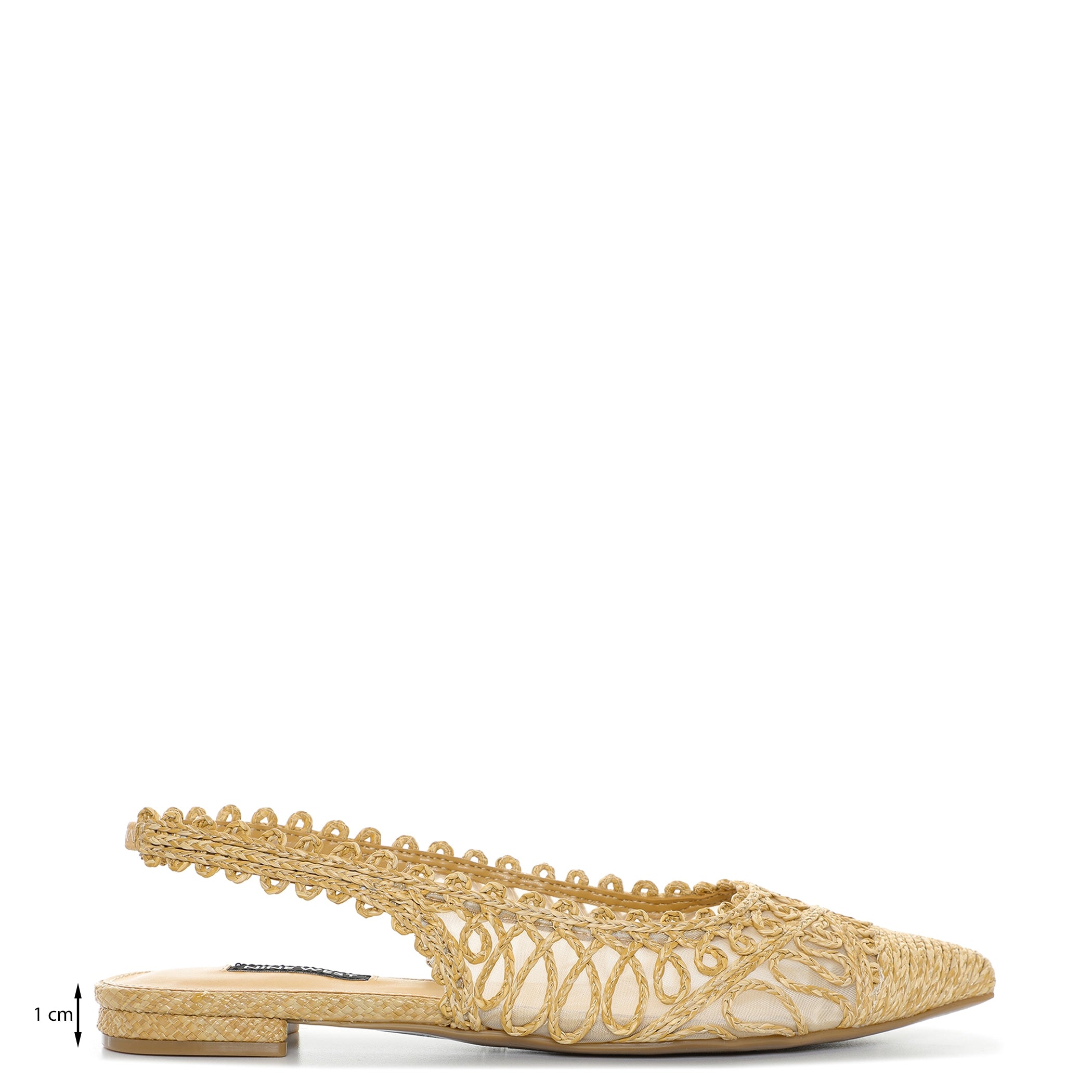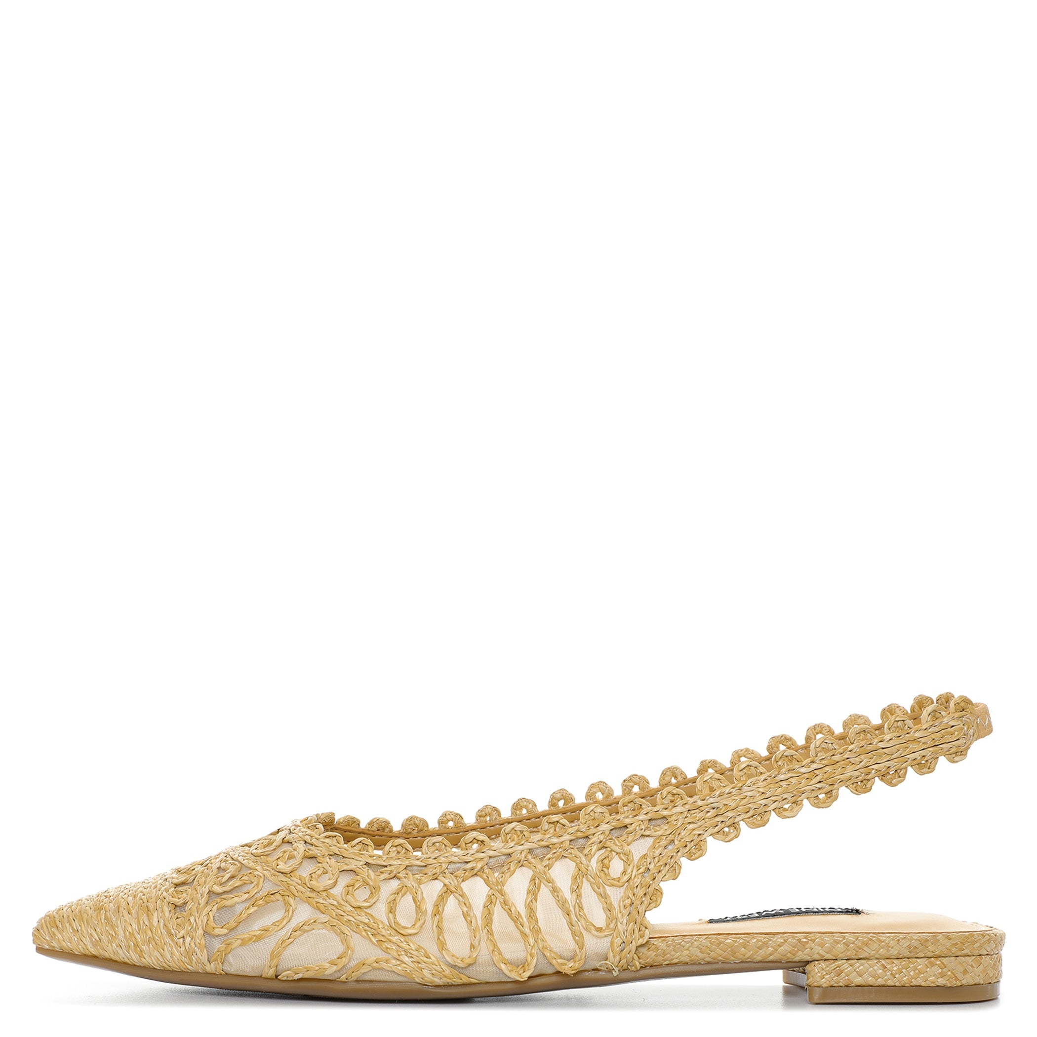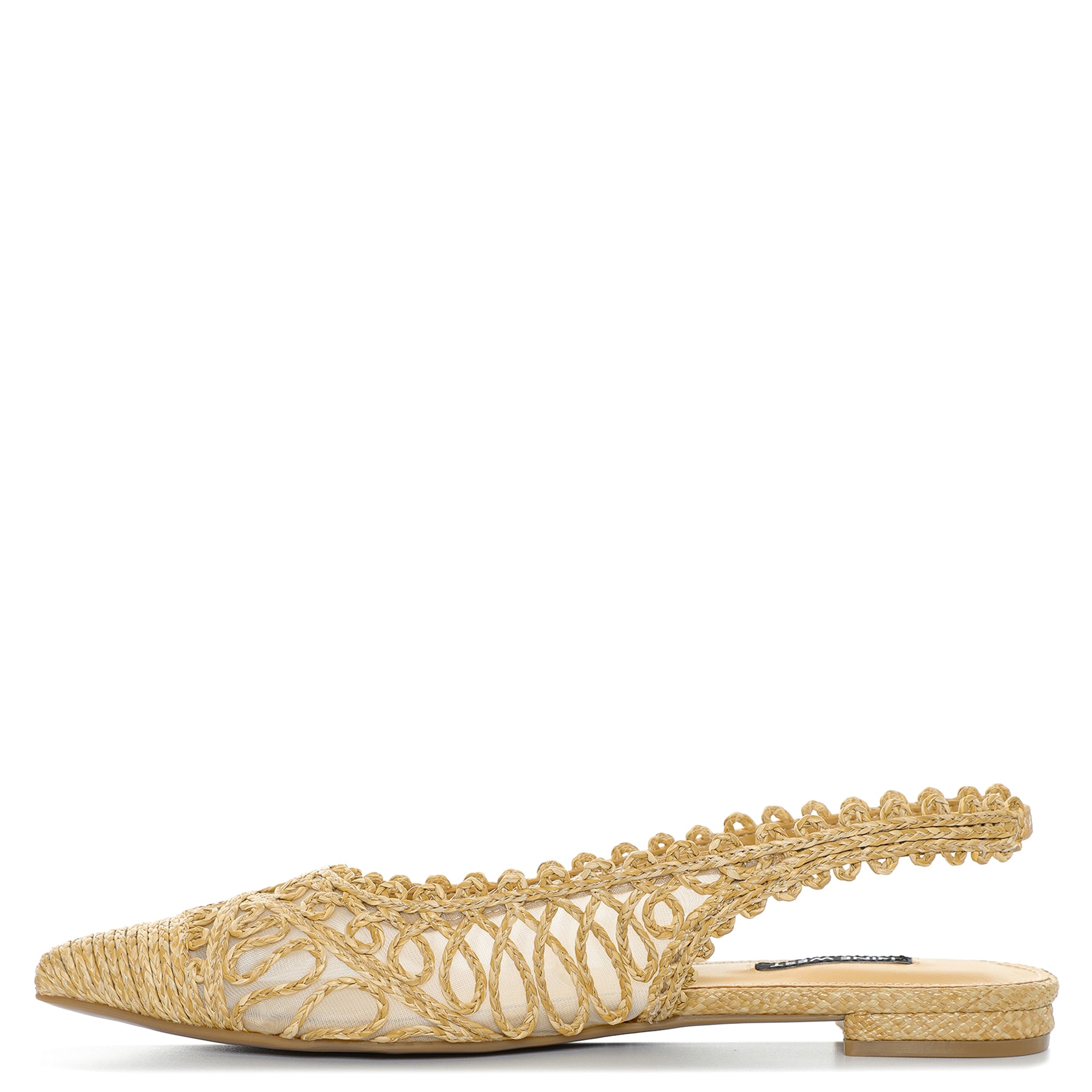 Ballerina Nine West para mujer elaborado en material rafia con aplicación lisa, estampado liso, fijación de elástico, punta puntal y textura lisa.