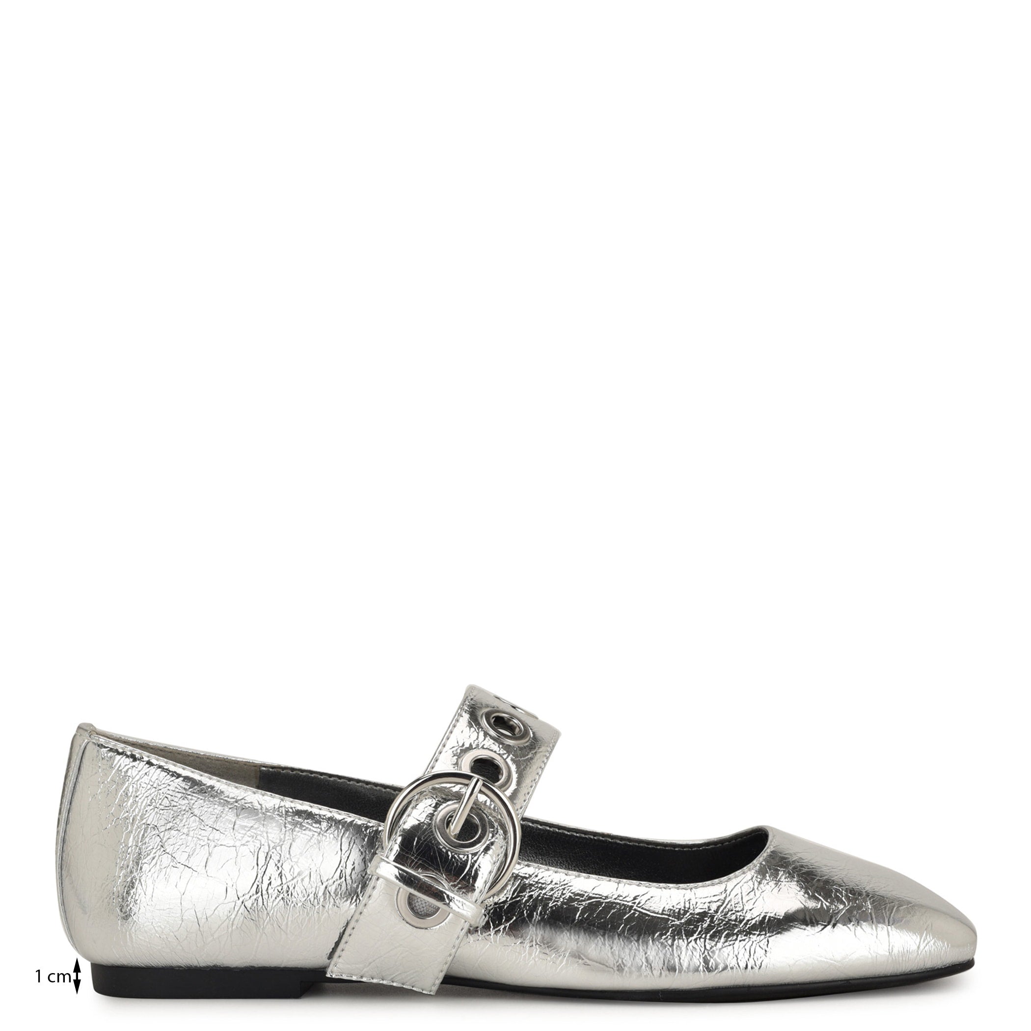 Ballerina Nine West para mujer elaborada en material sintético con estampado liso, fijación de hebilla, punta redonda y textura lisa.