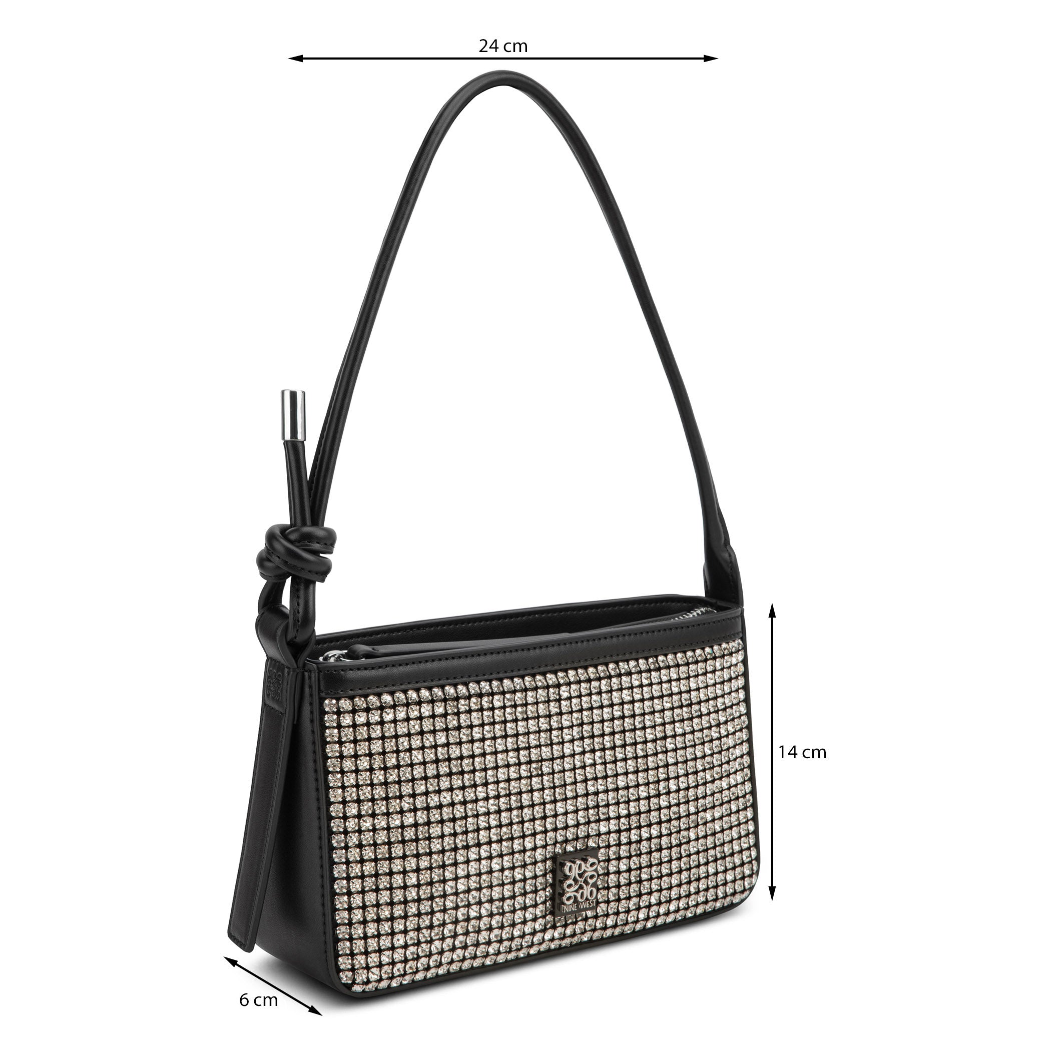 Bolsa de mano Nine West para mujer elaborada en material sintético con aplicación de herraje, estampado liso, fijación de cierre y textura lisa.