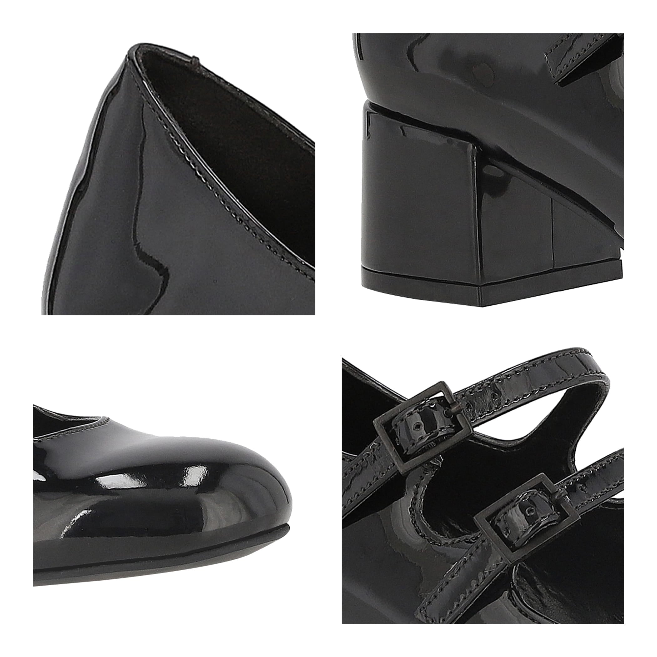 Estas zapatillas de material charol sintético son la elección perfecta para la mujer moderna y auténtica. Con un tacón de 4.5 cm, ofrecen una silueta estilizada que es ideal tanto para el día como para la noche. La fijación de hebilla permite un ajuste seguro y práctico. La punta redonda, cuña baja y el forro textil aseguran comodidad durante todo el día. Con su estampado liso y textura lisa, estas zapatillas añaden un toque de sofisticación a cualquier look.