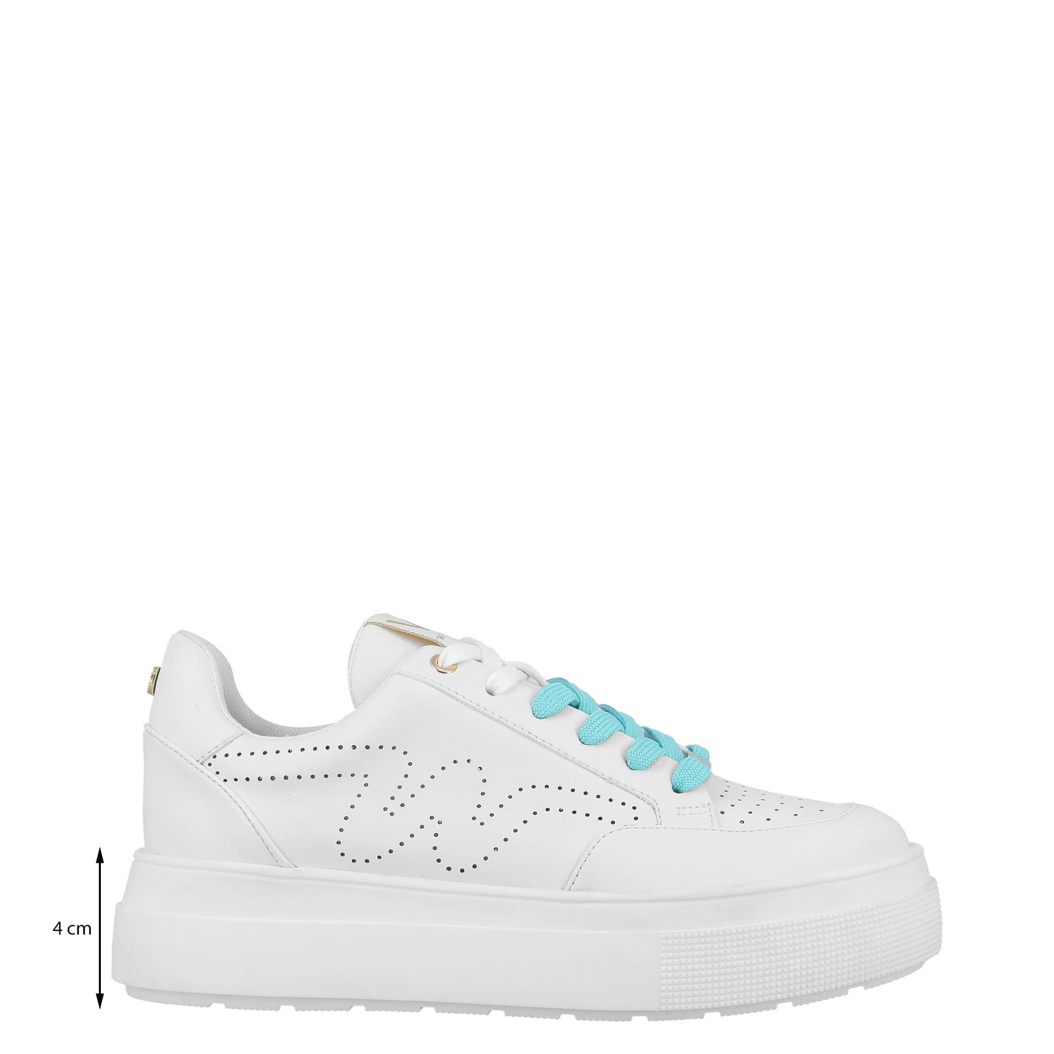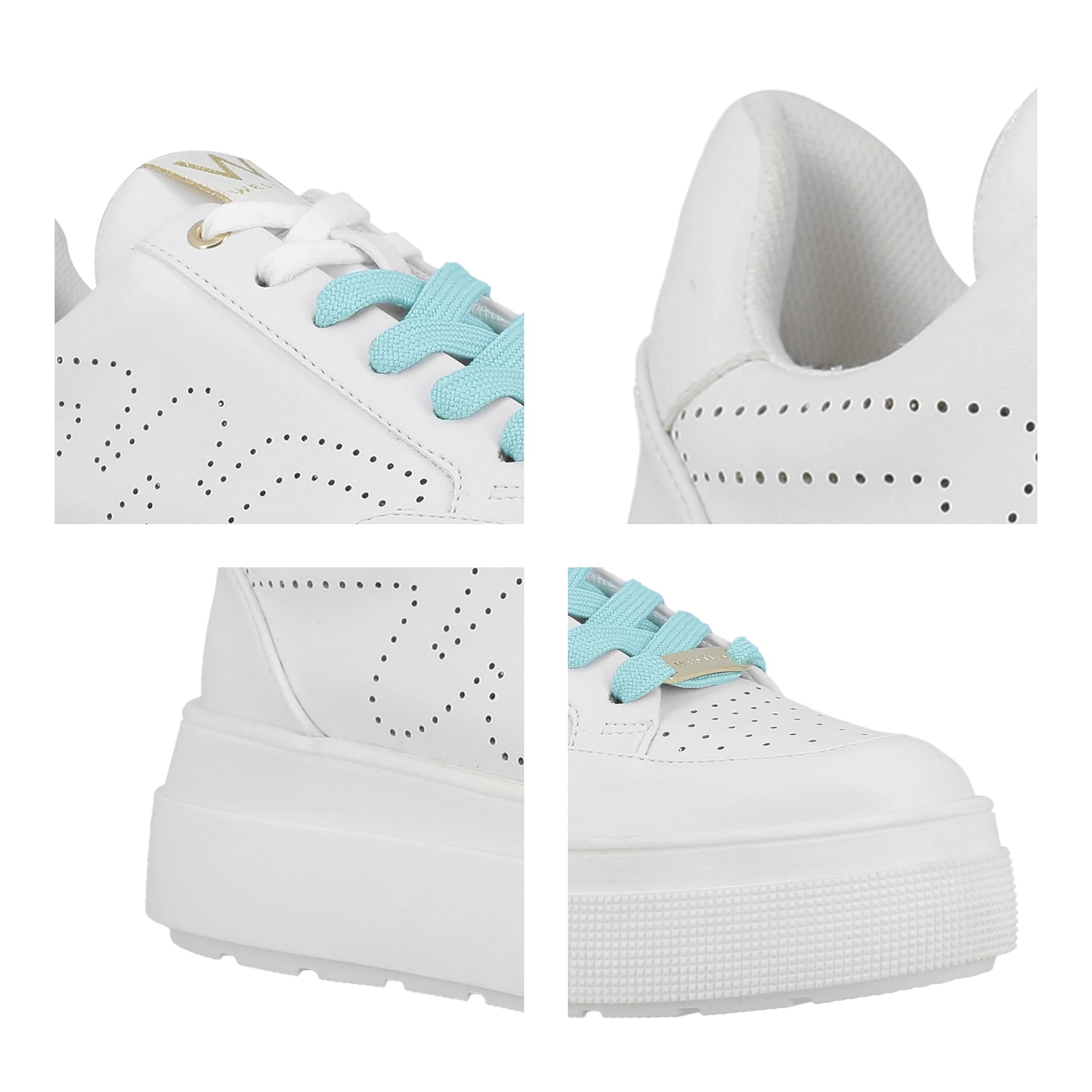 Tenis Westies para mujer elaborado en material sintético con aplicación corte láser, estampado liso, forro textil, suela de inyección, fijación agujeta, punta redonda, textura lisa, con una altura de plataforma 3 cm.