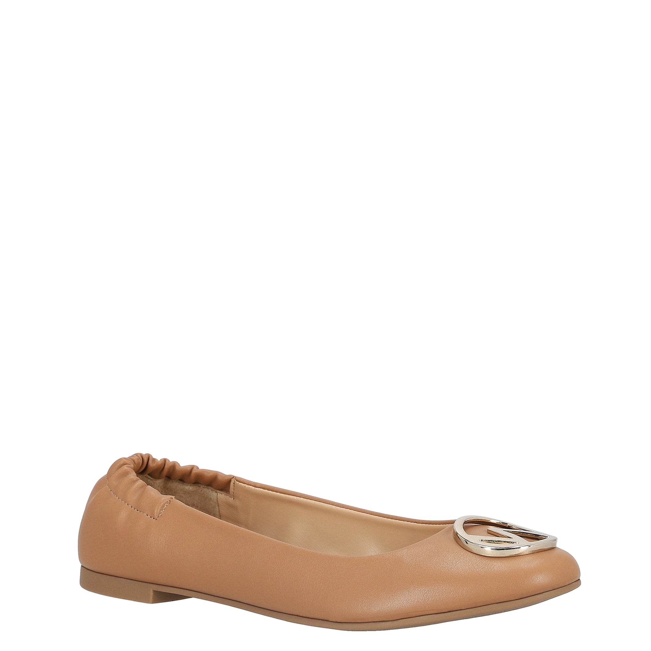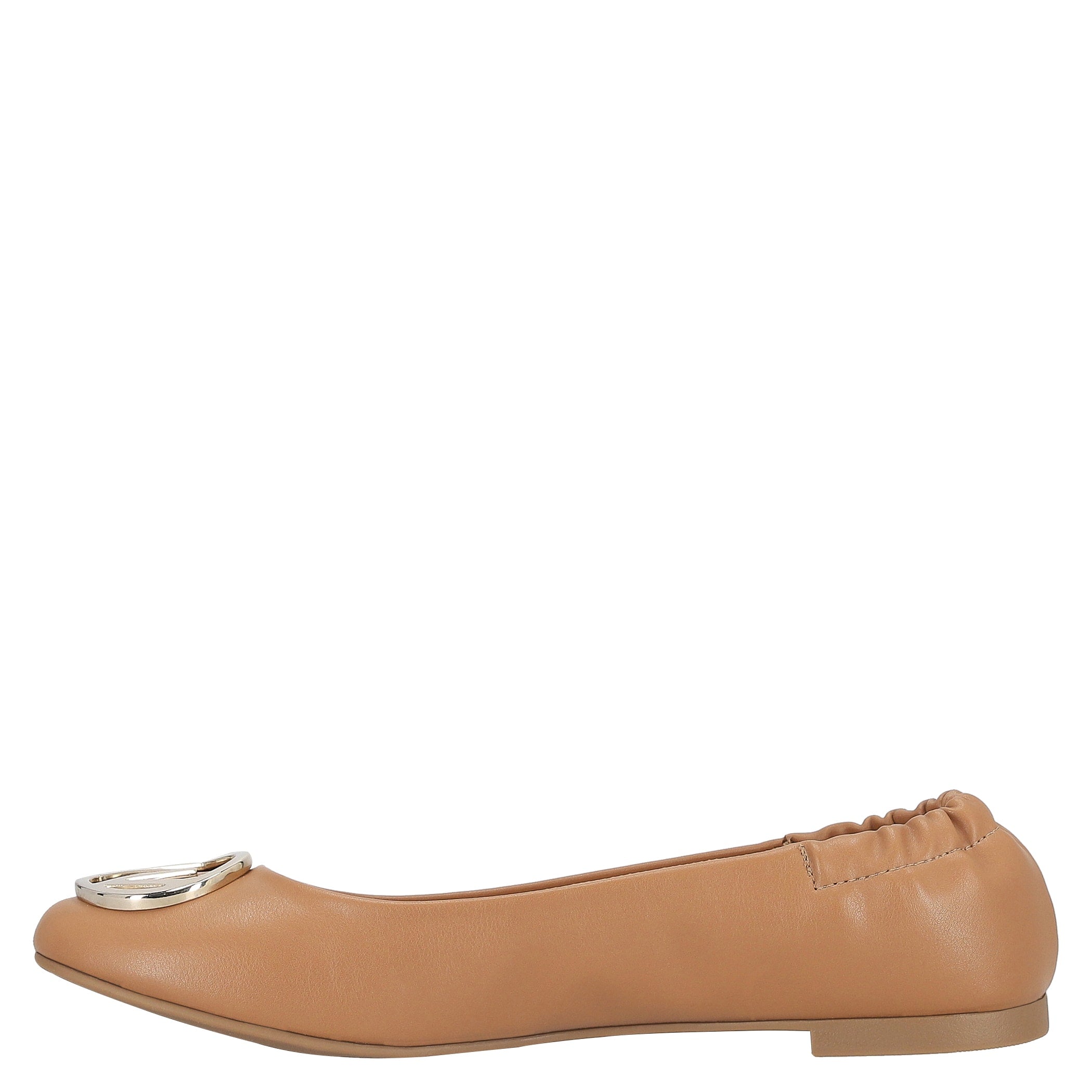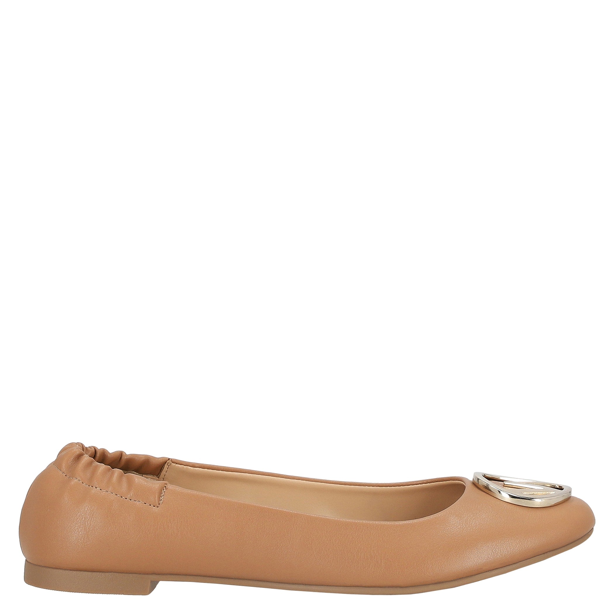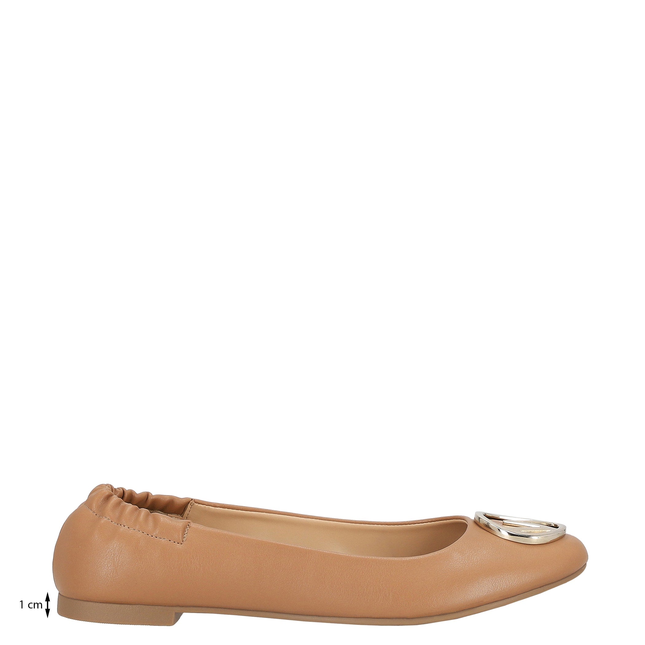 Balerina Westies para mujer elaborado en material sintético con aplicación de herraje, fijación 1 tiempo, punta redonda, textura lisa y altura de tacón 1 cm.