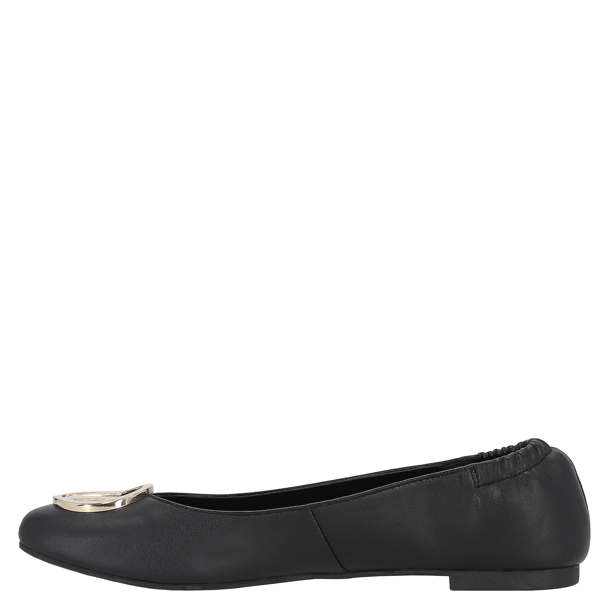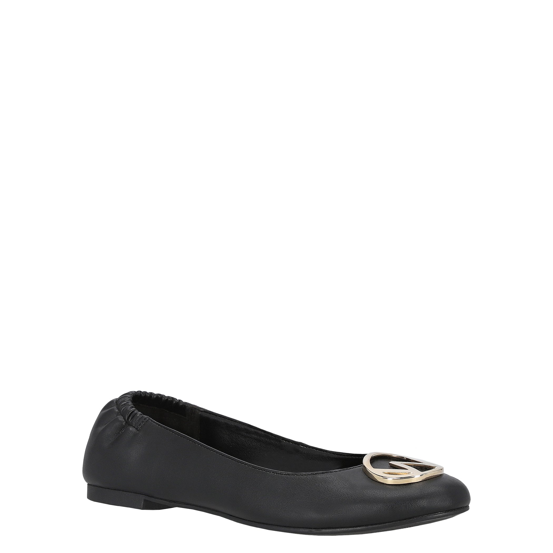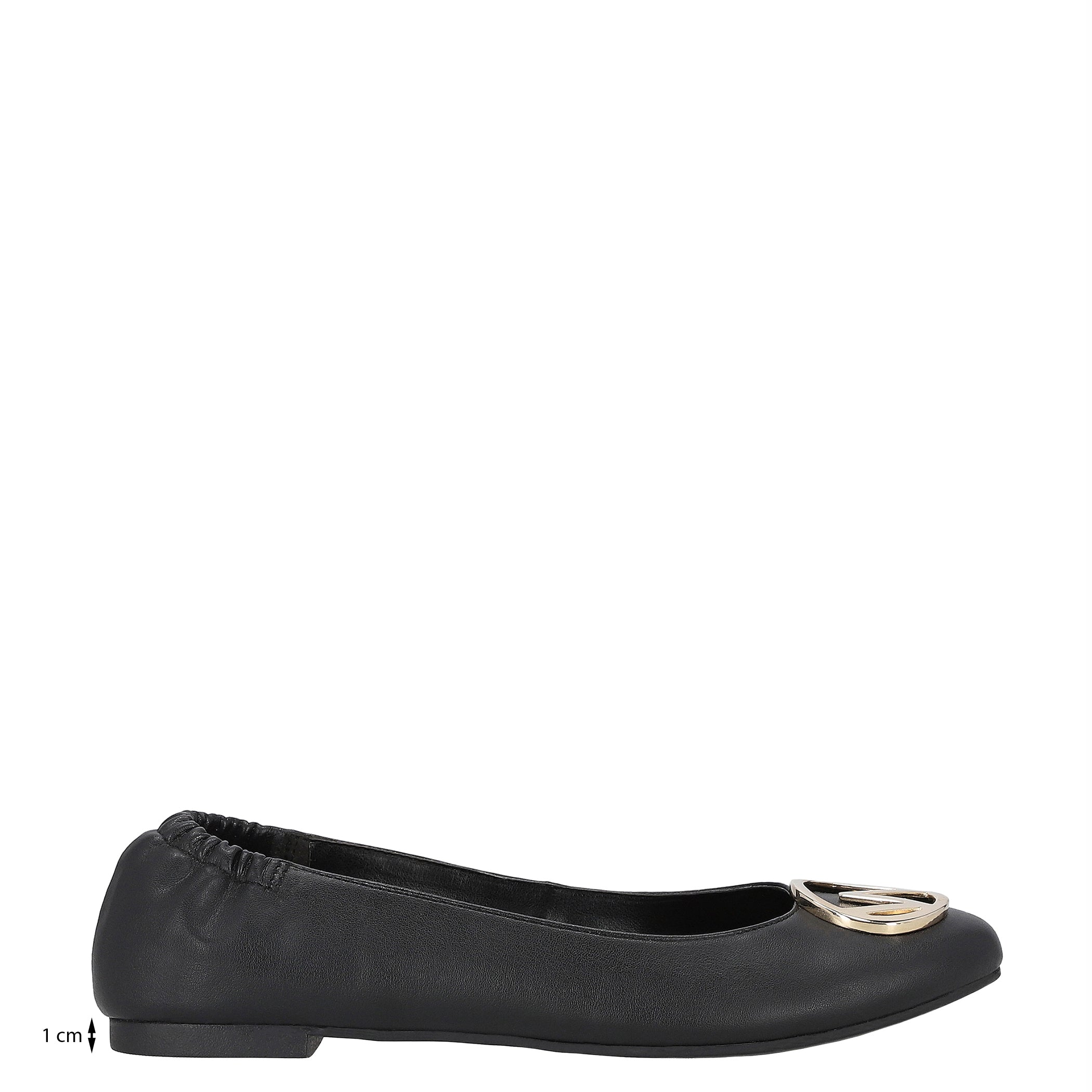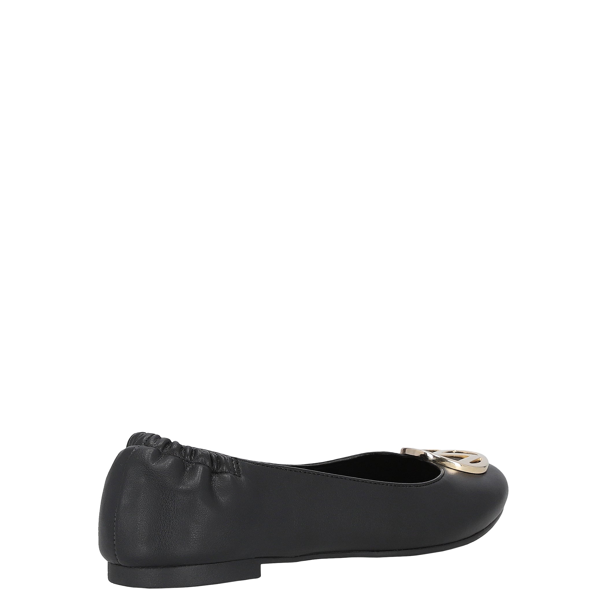 Balerina Westies para mujer elaborado en material sintético con aplicación de herraje, fijación 1 tiempo, punta redonda, textura lisa y altura de tacón 1 cm.