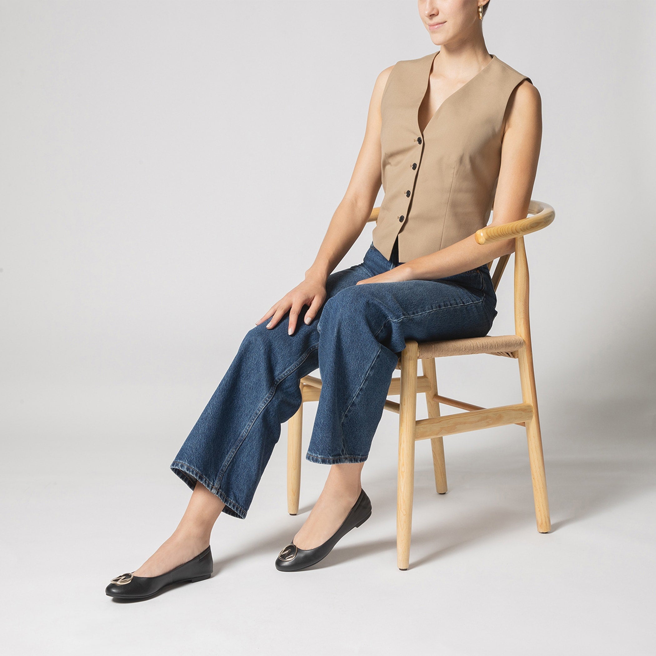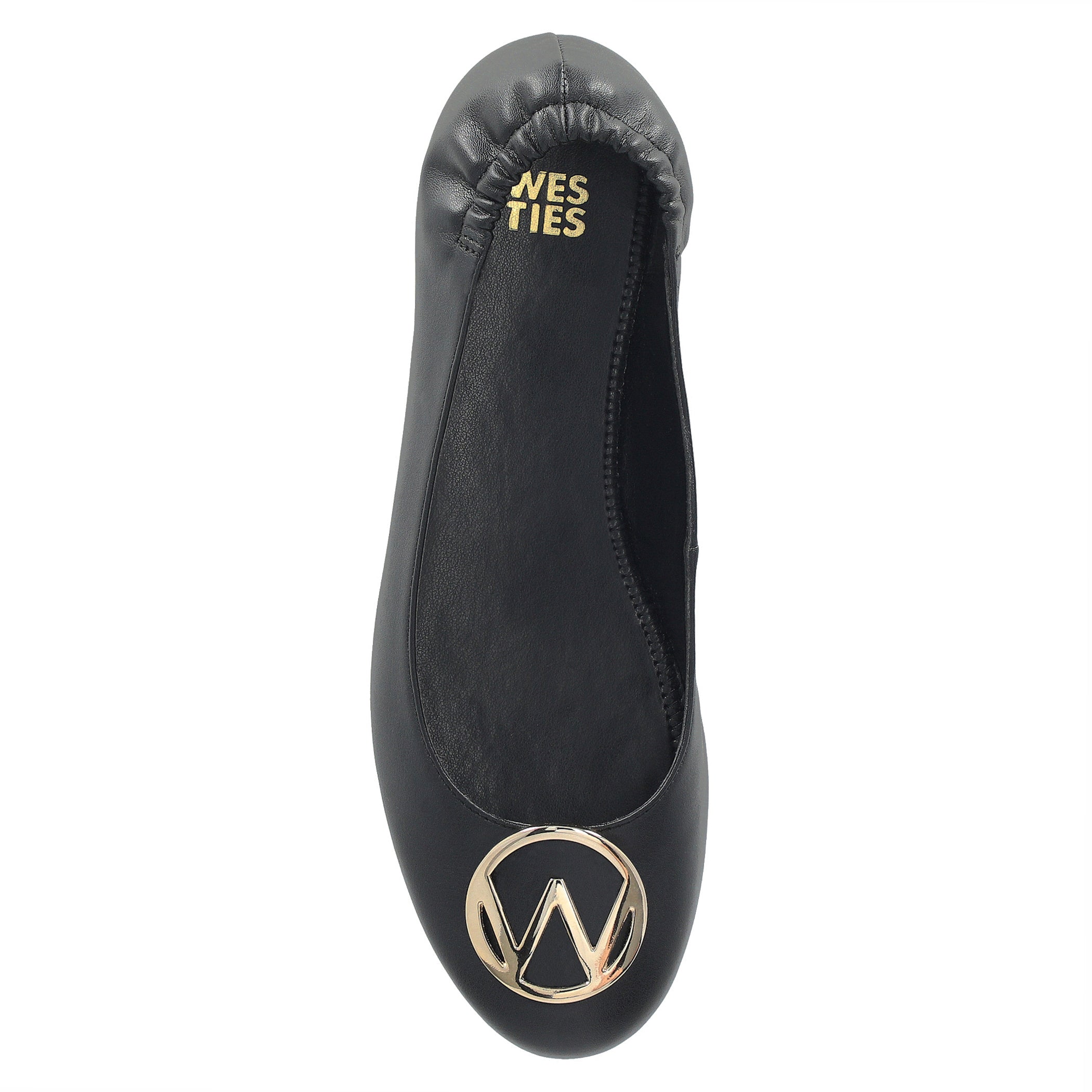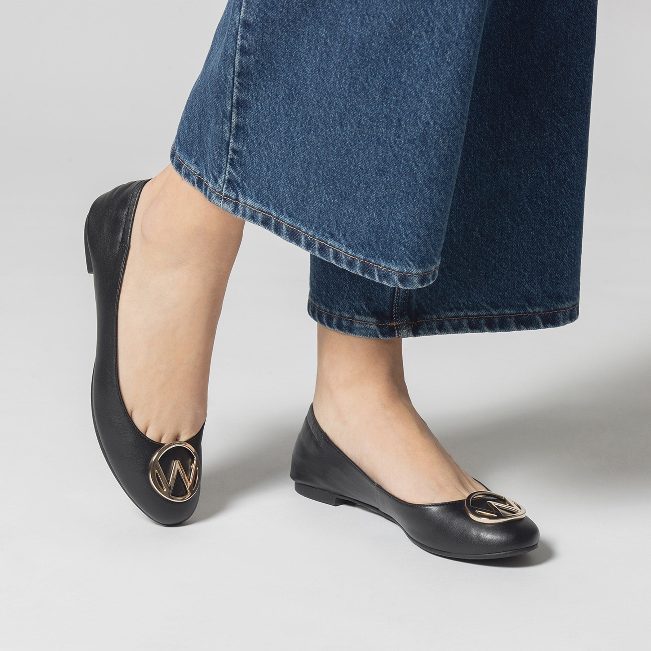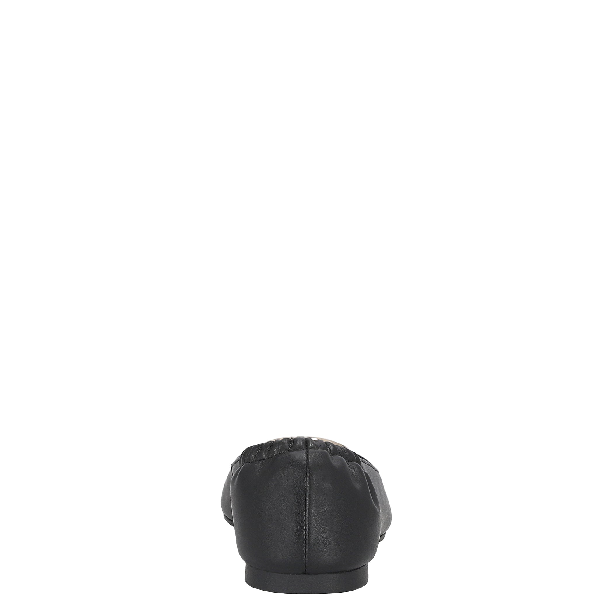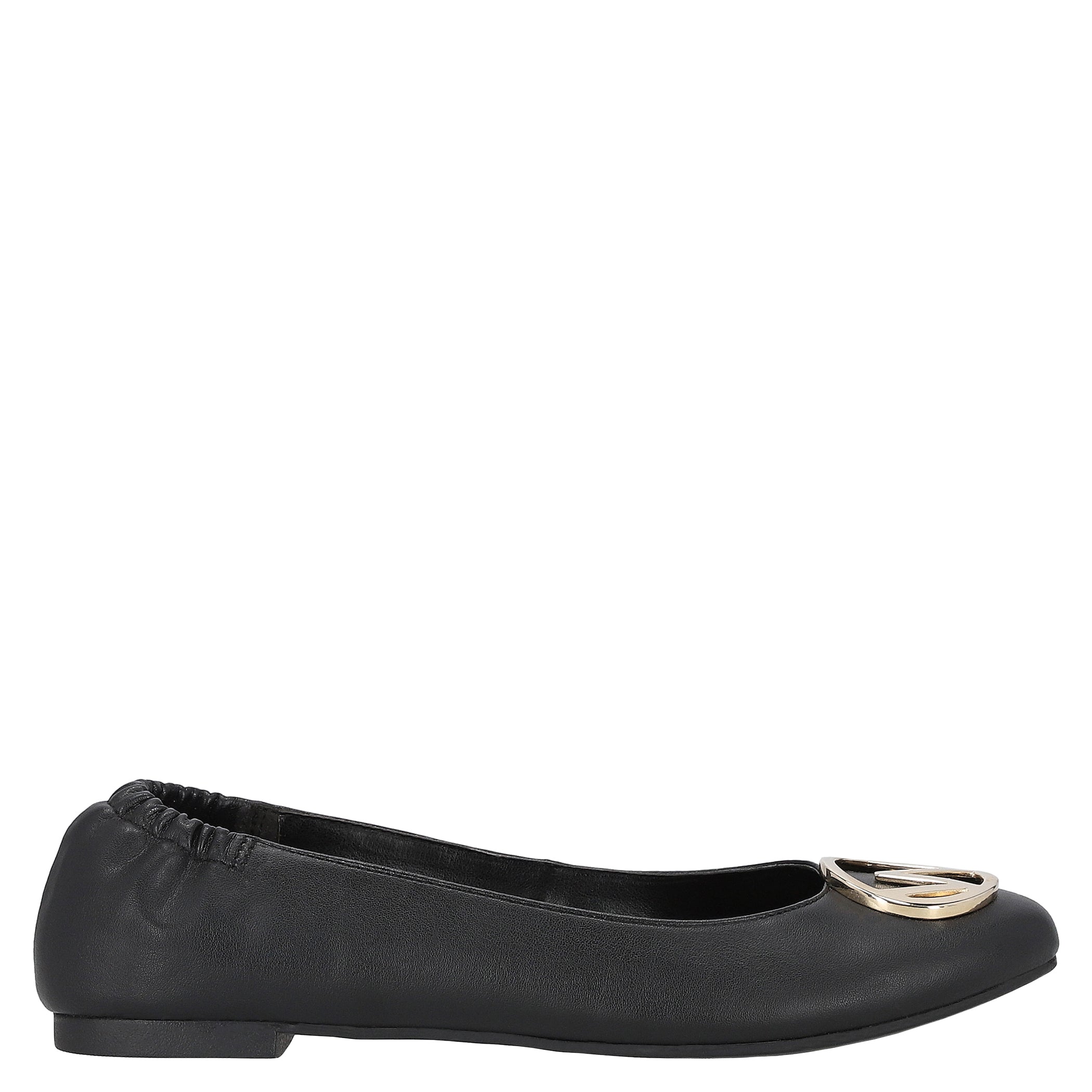 Balerina Westies para mujer elaborado en material sintético con aplicación de herraje, fijación 1 tiempo, punta redonda, textura lisa y altura de tacón 1 cm.